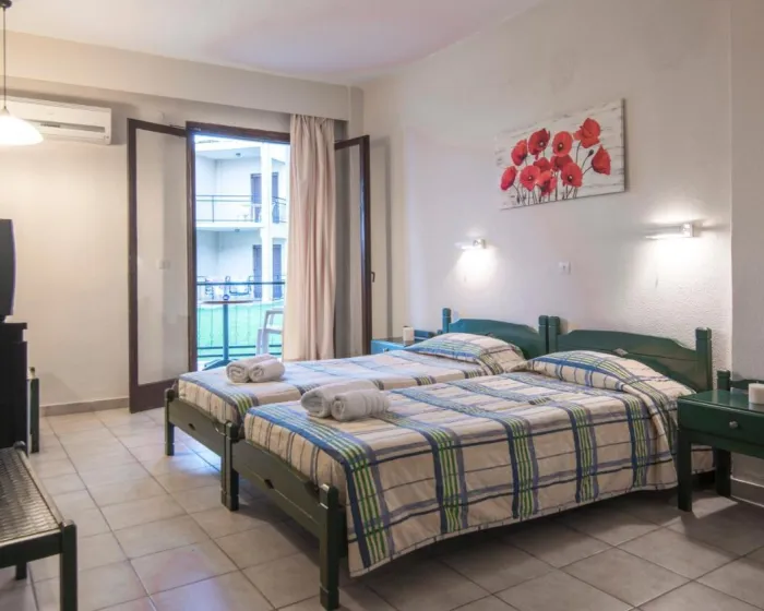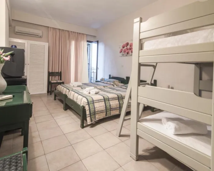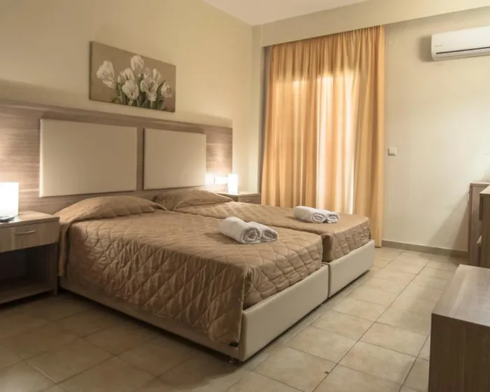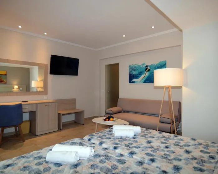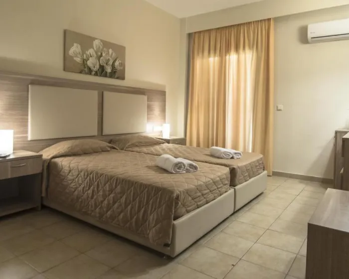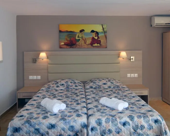 Klima uređaj i centralno grejanje osiguravaju da sobe održavaju udobne temperature. U većini jedinica, gosti mogu uživati u pogledu na more sa balkona ili terase. Sobe imaju bračni krevet i kauč na razvlačenje. Kreveti za decu i dodatni kreveti mogu se zatražiti za mlađe goste. Sef obezbeđuje sigurno čuvanje lične imovine gostiju. Kuhinja dolazi s frižiderom i mini frižiderom. Takođe se pružaju telefon, televizor sa satelitskim/kablovskim kanalima, radio, stereo sistem i WiFi (bez dodatne naknade). Fen za kosu i telefon se pružaju u kupatilima, koja uključuju tuš i kadu. Porodične sobe su dostupne za roditelje sa decom.