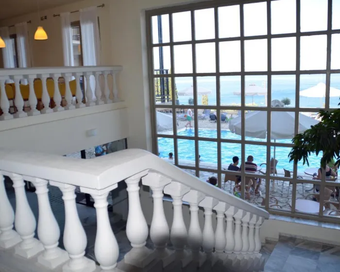 Mitsis Belvedere Benitses hotel se nalazi na spektakularno uzvišenoj lokaciji s pogledom na Jonsko more, a nalazi se 15 km od grada Krf i oko 3 km južno od lepog sela Benitses. More i mala šljunkovita plaža su preko puta hotela, a autobuska stanica je takođe u neposrednoj blizini.