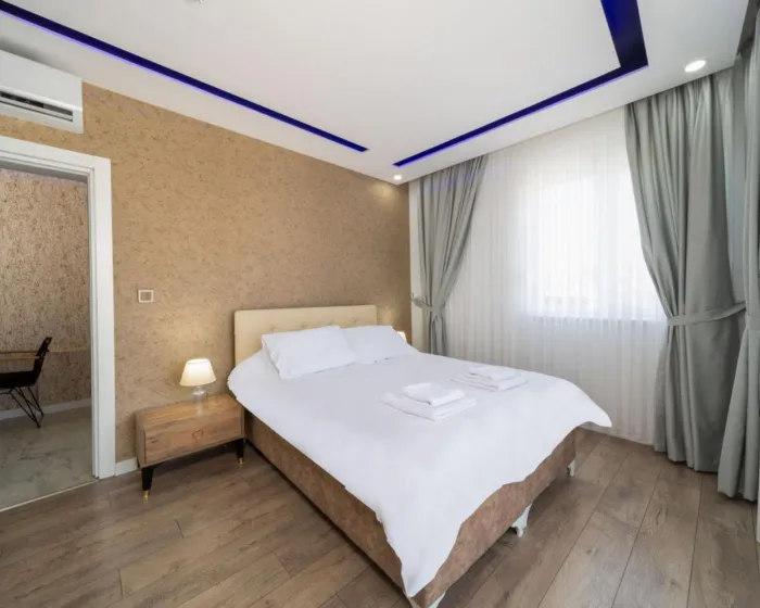Ponosno predstavljamo muzejska čuda i poznatu mediteransku gostoljubivost, Muratpaša je spremna da vam pruži sjajno letnje iskustvo. A naša odlično locirana kuća Kišla čeka baš vas. Za vaše mesto u srcu ovog čarobnog mesta gde sunce obilno sija, rezervišite odmah! Ključne karakteristike: -Centralna lokacija -1 km od plaže Mermerli -Klima uređaj u dnevnoj sobi i spavaćoj sobi Istina o kući: -Sofa u dnevnoj sobi može se koristiti kao krevet za 1 gost.
