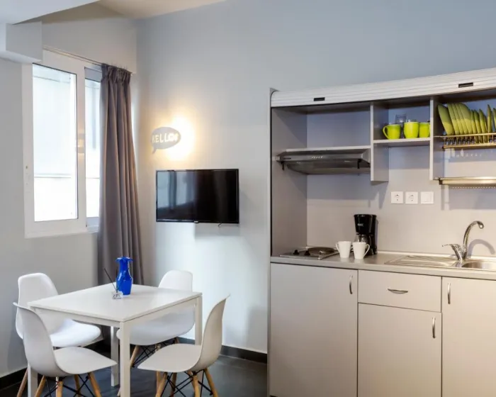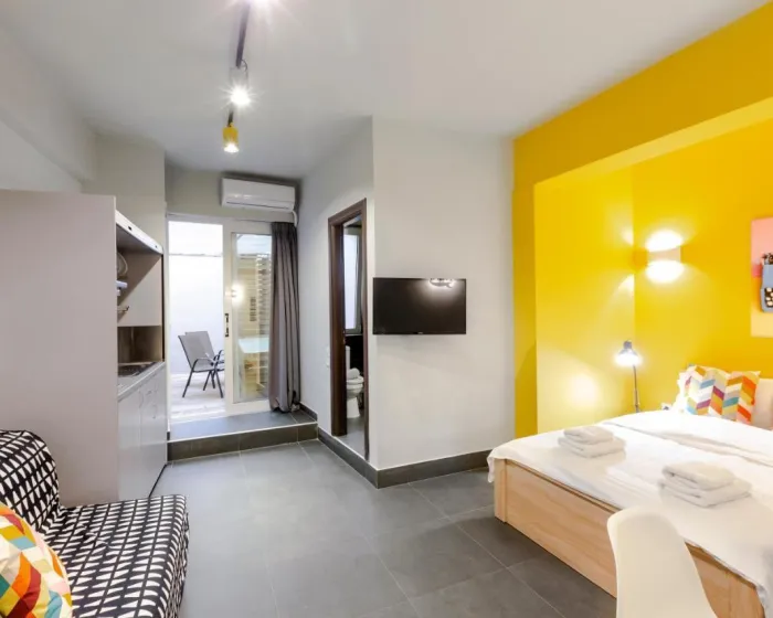 Ova smeštajna jedinica srdačno dočekuje goste u Atini.