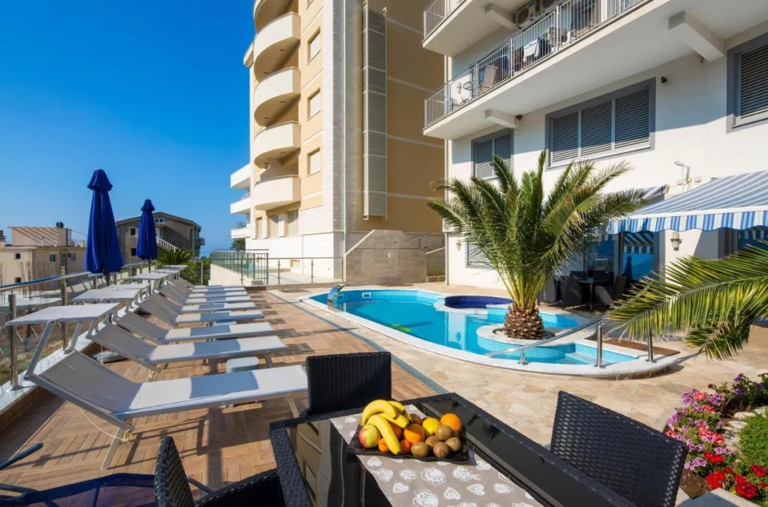 Ovaj apartmanski kompleks se nalazi u Bečićima, direktno na plaži. Prijateljsko osoblje na recepciji je tu da odgovori na sva pitanja. Sadržaji uključuju uslugu čuvanja prtljaga, sef, uslugu menjačnice i aparat za piće. Bežični internet omogućava gostima da ostanu povezani tokom odmora. Turistički centar pruža pomoć pri rezervaciji izleta. Kompleks ima različite sadržaje za goste sa invaliditetom. Lift i pogodnosti prilagođene za invalidska kolica su dostupni. Kamin stvara udobnu atmosferu. ljubitelji filma će pronaći mnogo "svetla, kamera, akcija" u bioskopu. Takođe postoje brojni prodavnice pogodne za šetnju i razgledanje. Prostor oko kompleksa ima igralište i divan vrt. Dodatni sadržaji uključuju TV salu i dečiju sobu. Gosti koji dolaze automobilom mogu parkirati svoja vozila u garaži ili na parkingu. Dodatne usluge i sadržaji uključuju uslugu bezbednosti 24 sata, uslugu čuvanja dece, uslugu čuvanja dece, uslugu iznajmljivanja automobila, transfer uslugu, uslugu posluge u sobi 24 sata, uslugu buđenja, uslugu pranja veša, frizera, vešeraj na kovanice i hotelski šatl autobus. Aktivni gosti koji žele da istraže okolinu biciklom će ceniti uslugu iznajmljivanja bicikla. Takođe je dostupno skladištenje bicikala. Besplatne novine su dostupne. Na raspolaganju je internet centar za poslovne potrebe gostiju. Sobe imaju dnevnu sobu, kuhinju i kupatilo. Klima uređaj, centralno grejanje i ventilator osiguravaju udobne temperature. Gosti mogu da se opuste i uživaju u pogledima na more sa terase ili privatne terase nekih soba. Sobe imaju krevet queen size ili king size ili kauč na razvlačenje. Dodatni kreveti mogu biti zatraženi. U sobi je obezbeđen radni sto. Dodatne mogućnosti uključuju frižider, mikrotalasnu, aparat za čaj/kafu i mašinu za pranje sudova. Dodatni sadržaji uključuju mašinu za pranje veša, set za peglanje, presu za pantalone i sušilicu. Televizor sa satelitskim/kablovskim kanalima, CD plejer, DVD plejer, konzola za video igrice i WiFi (bez dodatne naplate) pružaju sve neophodno za udoban odmor. Fen za kosu i bade mantili su dostupni u kupatilima, koja su opremljena tušem. Kozmetički proizvodi i izbor peškira pružaju dodatnu udobnost u kupatilima. Mogu se rezervisati sobe prilagođene za invalidska kolica. Kompleks ima porodične sobe i sobe za nepušače. Postoje unutrašnji i spoljni bazeni i deo za kupanje dece. Gosti mogu da se počaste osvežavajućim pićima u baru pored bazena i opuste se u đakuziju. Ležaljke i suncobrani su dostupni na sunčanoj terasi. Kompleks nudi sportske aktivnosti na otvorenom, uključujući vožnju biciklom/brdskih bicikala, tenis, mini golf, golf, streljaštvo, ribolov i jahanje. Sa dostupnim jedrenjem na dasci, kanuingom, ronjenjem sa maskom i perajama i ronjenjem, ljubitelji vodenih sportova će imati mnogo toga da izaberu. Gosti mogu uživati u raznim unutrašnjim sportovima, uključujući teretanu, stoni tenis, bilijar, pikado, kuglanje, skvoš, jogu i aerobik. Različite wellness opcije su dostupne u apartmanskom kompleksu, uključujući spa centar, saunu, parno kupatilo, tursko kupatilo, tretmane masaže i solarijum. Zabavni sadržaji uključuju program zabave, živu muziku, plesni klub, kazino i noćni klub. Kompleks uključuje restoran i bar. Osvežavajuća pića u baru na plaži su savršen način da uživate u toplom vremenu. Obilan švedski sto za doručak i ručak se poslužuju svaki dan. Dijetetski obroci i dečji obroci mogu biti pripremljeni na zahtev. Pored toga, dostupne su posebne opcije za catering i piknici.