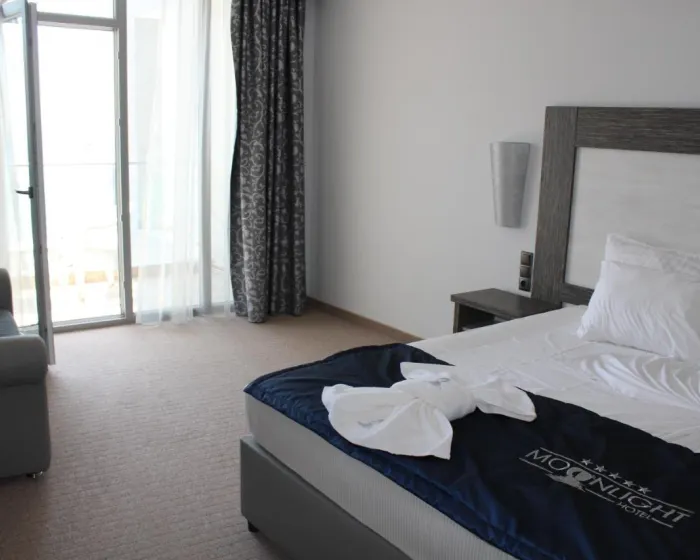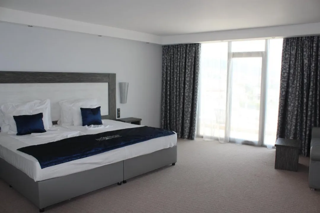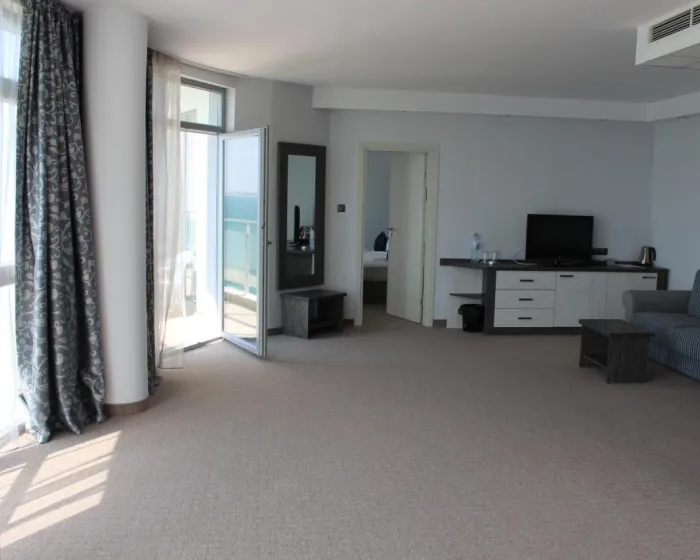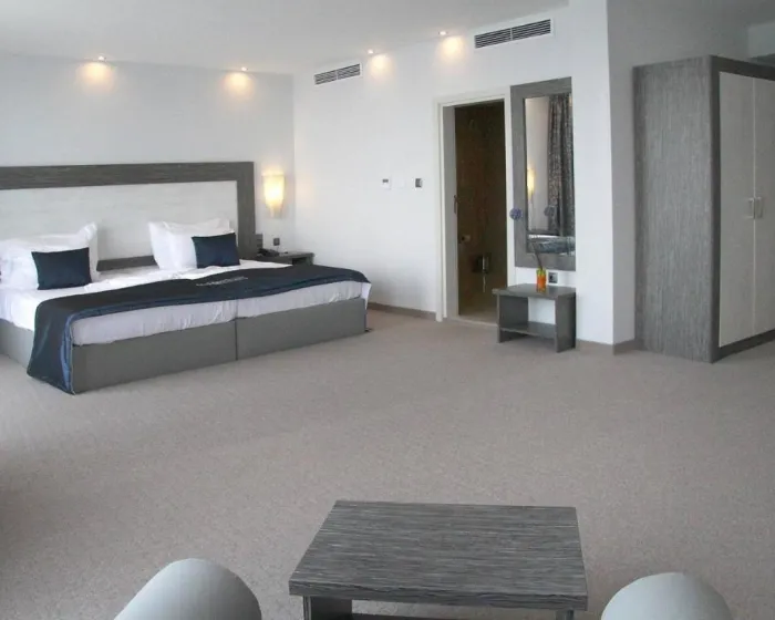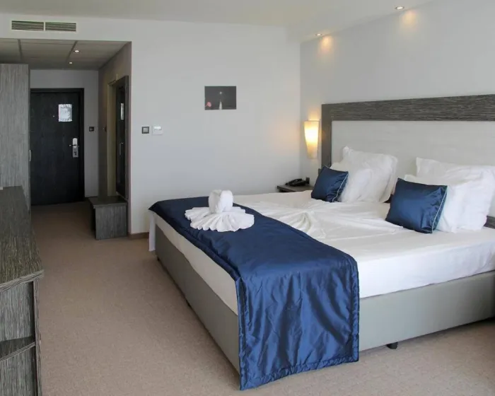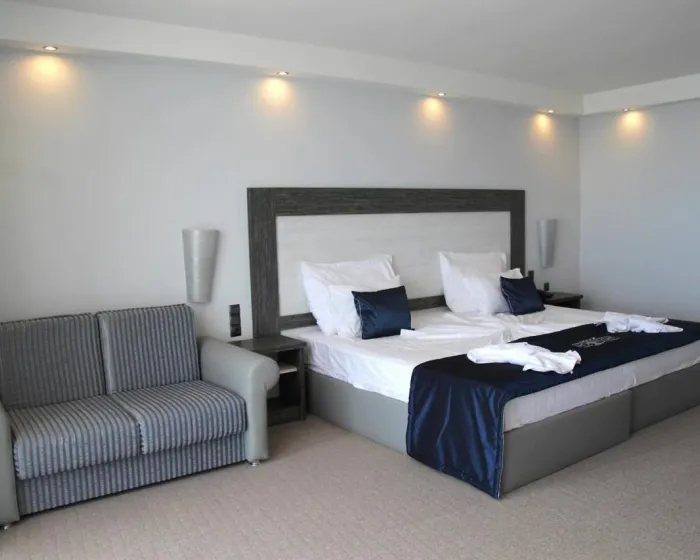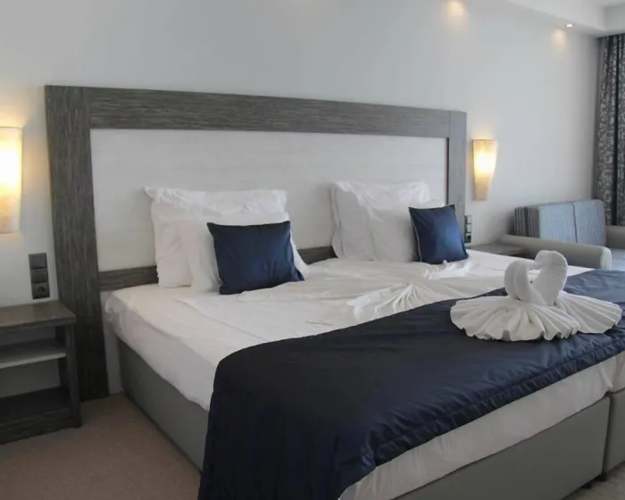 Klima uređaj i centralno grejanje obezbeđuju da sobe održavaju udobne temperature. Gosti mogu opustiti i uživati u pogledu na more sa balkona ili privatne terase nekih soba. Sve sobe su sa tepihom i imaju krevet queen size, king size krevet ili sofu na razvlačenje. Dostupne su i odvojene spavaće sobe. Kreveti za decu i dodatni kreveti mogu se zatražiti za mlađe goste. Na raspolaganju su i sef i mini bar. Za praktičnost gostiju, jedinice uključuju mini frižider i čaj/kafe stanice. Telefon, TV i WiFi (bez dodatnih troškova) obezbeđuju sve što je potrebno za udoban odmor. Gosti će takođe pronaći papuče u svojim sobama. Fen za kosu i bade mantili su dostupni u kupatilima, koja su opremljena tušem i kadom. Hotel ima porodične sobe i sobe za nepušače.