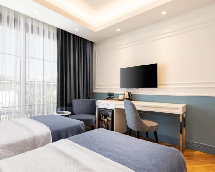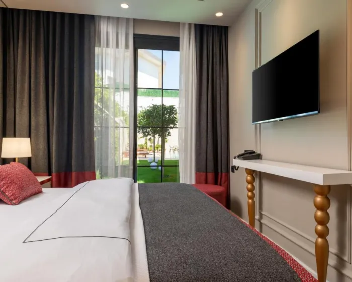 Sobe su opremljene klima uređajem i centralnim grejanjem. Sobe imaju bračni krevet i sofu na razvlačenje. Dodatni kreveti se mogu zatražiti. Sef i mini bar su takođe dostupni. Gosti će takođe pronaći aparat za kafu/čaj među standardnim sadržajima. Telefon, satelitska televizija i WiFi (bez dodatne naknade) osiguravaju optimalnu udobnost. Gosti će takođe pronaći papuče u svojim sobama. Sadržaji u kupatilima uključuju tuš. Fen za kosu, bade mantili i telefon su dostupni za svakodnevnu upotrebu. Kao poseban dodatak, kupatila su takođe opremljena kozmetičkim proizvodima i izborom peškira. Hotel ima porodične sobe i sobe za nepušače.