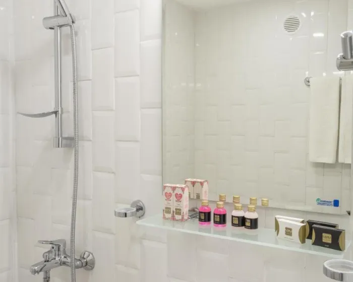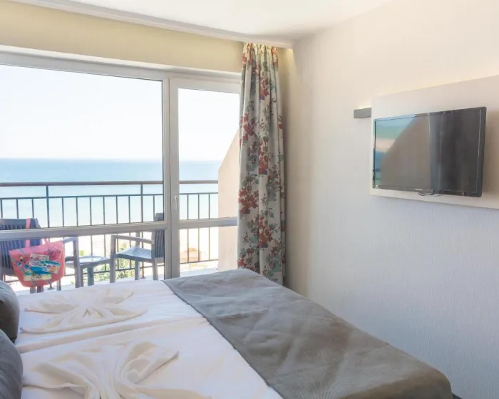 Rooms feature a living room and a bathroom. Air conditioning ensures comfortable temperatures. Guests can relax and enjoy the sea views from the balcony or private terrace of some rooms. Guests are sure to get a good night's sleep in the double bed. Extra beds or children's beds can be provided upon request. Guests may safely secure their valuables in a safe for an additional fee. Guests will also find a mini fridge included among the standard features. A telephone, a flatscreen television with cable channels and WiFi (no extra charge) are provided as well. Bathrooms include a hairdryer and are equipped with a shower and a bathtub. For extra comfort in the bathrooms, guests are offered cosmetic products. Wheelchair-accessible rooms can also be booked. The hotel has non-smoking rooms and smoking rooms.