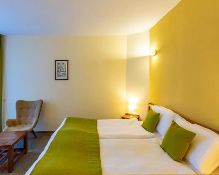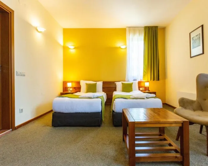 Standardna soba Lux 27m², francuski ležaj ili dva odvojena ležaja, pomoćni ležaj, grejanje, balkon, TV SAT, telefon, pristup internetu, mini bar, fen, kupatilo.
