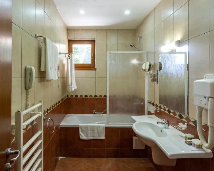 Standardna soba 24 m², francuski ležaj ili dva odvojena ležaja, pomoćni ležaj, grejanje, balkon, TV SAT, telefon, pristup internetu, mini bar, fen, kupatilo.