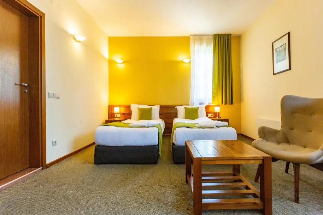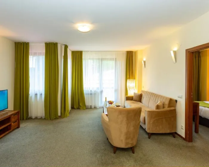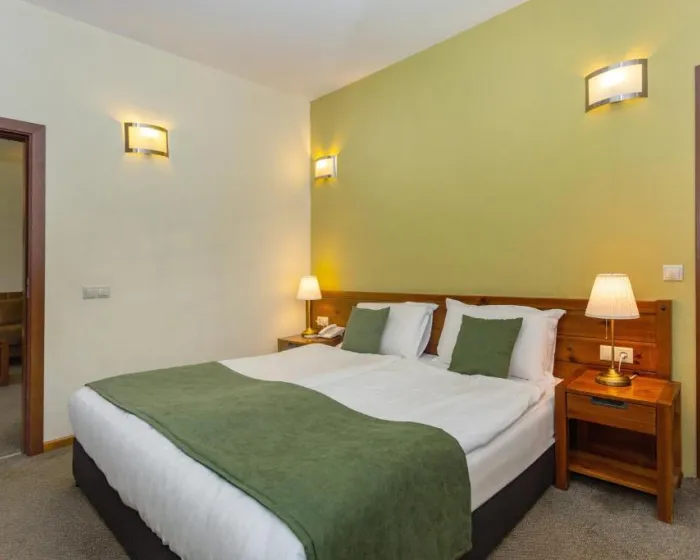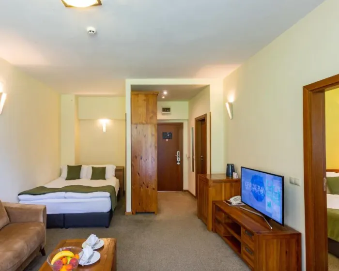Suite sa jednom spavaćom sobom 55 m², francuski ležaj, grejanje, balkon, TV SAT, telefon, pristup internetu, mini bar, fen, električni čajnik, kupatilo, odvojene prostorije.