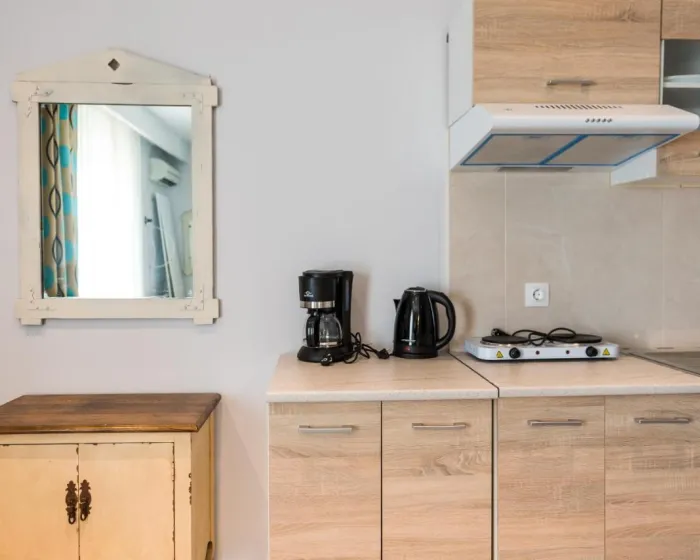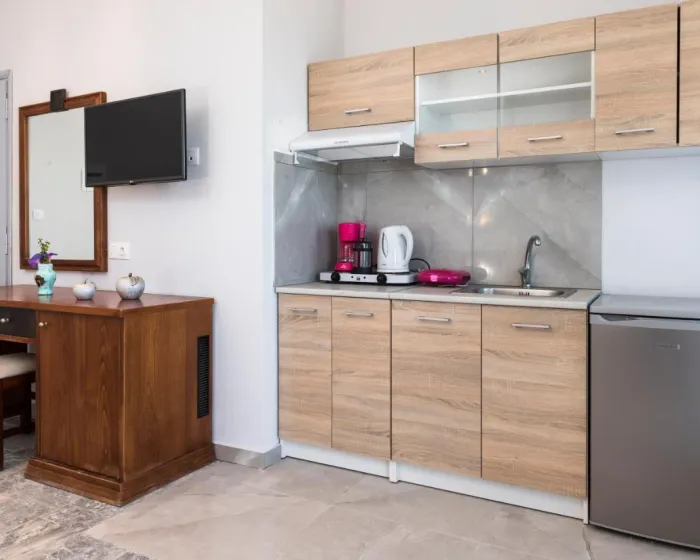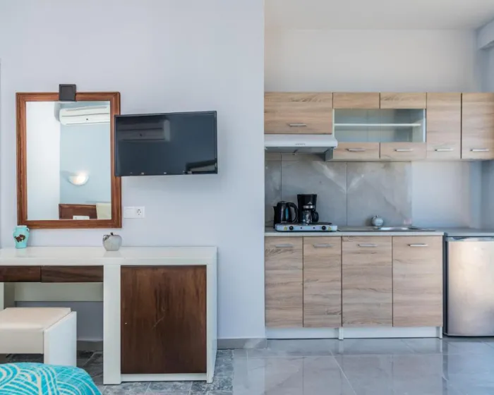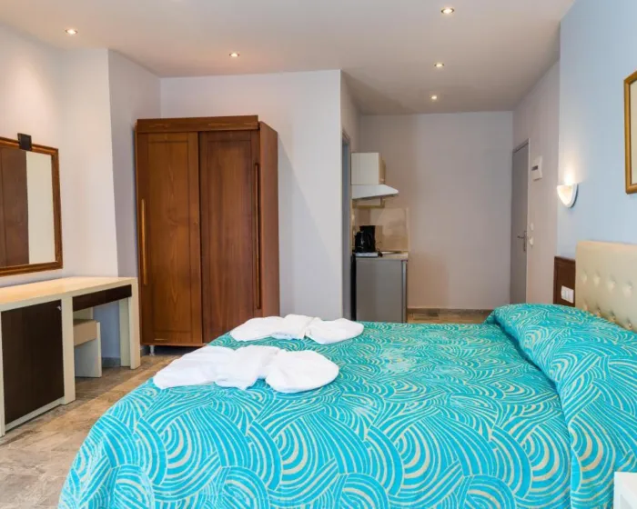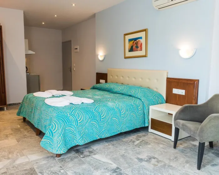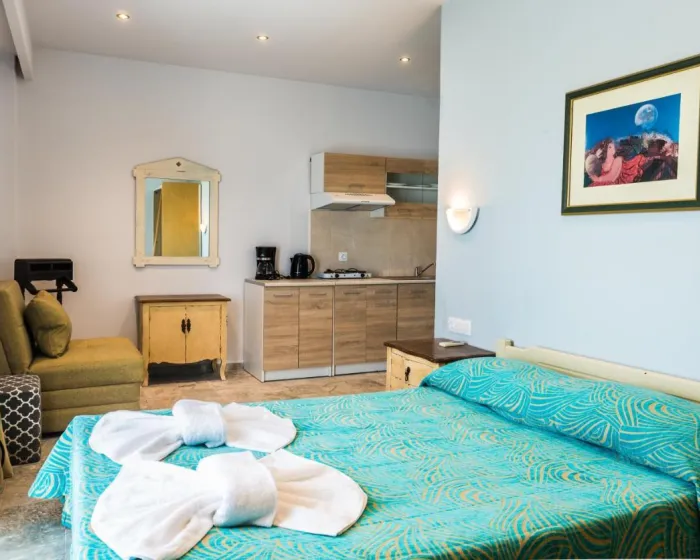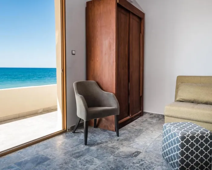Sobe su opremljene klima uređajem i centralnim grejanjem. U većini jedinica, gosti mogu uživati u pogledu na more sa balkona ili terase. Sobe imaju bračni krevet i kauč na razvlačenje. Kreveti za decu i dodatni kreveti mogu se zatražiti za mlađe goste. Sef i minibar su takođe dostupni. Kuhinjica dolazi sa frižiderom i aparatom za kafu/čaj. Telefon, satelitska televizija i WiFi osiguravaju optimalnu udobnost. Fen za kosu i ogledalo su obezbeđeni u kupatilima, koja uključuju tuš. Kao poseban dodatak, kupatila takođe imaju kozmetičke proizvode i izbor peškira. U kompleksu se nalaze sobe za nepušače.