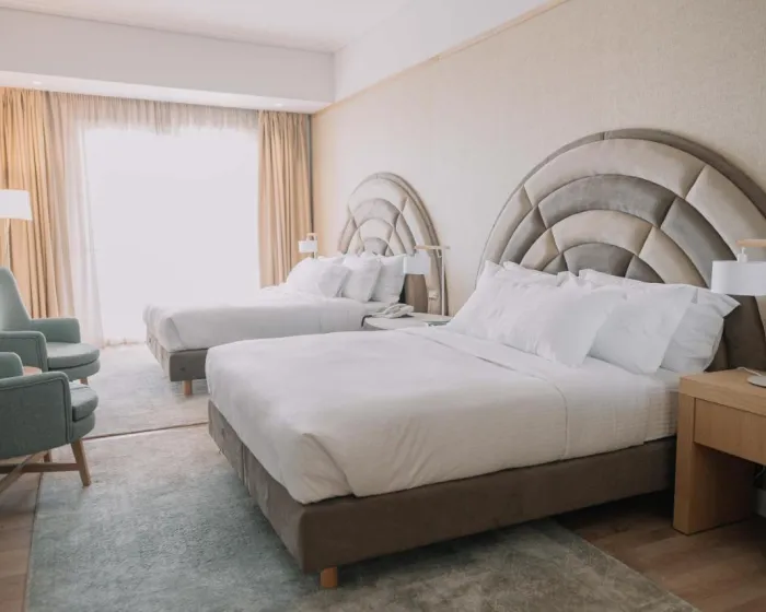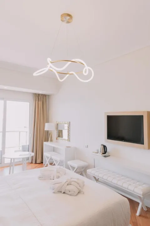 Klima uređaji i centralno grejanje obezbeđuju da sobe održavaju udobne temperature. Gosti mogu uživati u pogledu na more sa balkona ili terase. Sobe imaju bračni krevet i kauč na razvlačenje. Sef, minibar i radni sto su takođe dostupni. Opremljene telefonom, TV-om, radijem i WiFi-jem, sobe pružaju mnoge načine za goste da ostanu povezani i zabavljaju se. Fen za kosu i telefon su obezbeđeni u kupatilima, koje uključuju tuš kabinu. Sobe prilagođene za osobe u invalidskim kolicima mogu se rezervisati. Hotel ima porodične sobe i sobe za nepušače.