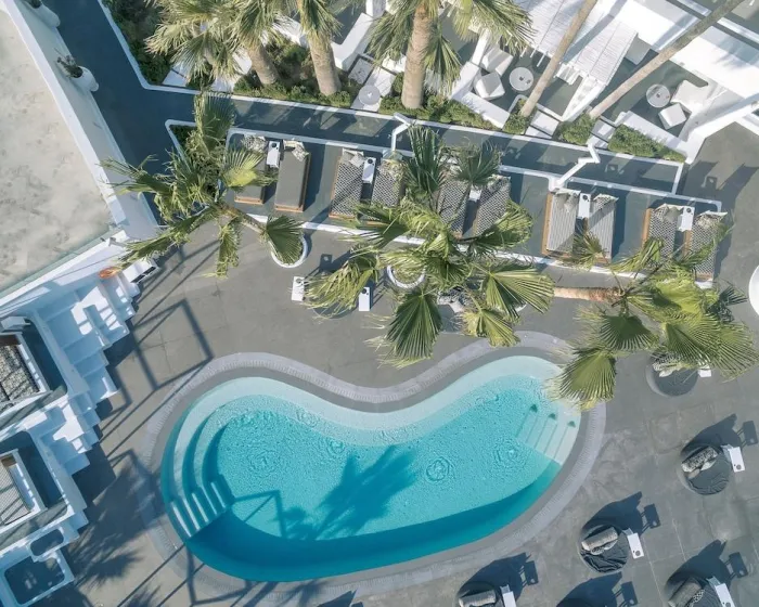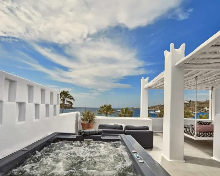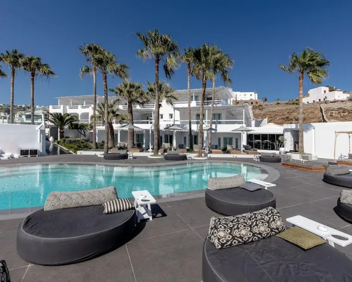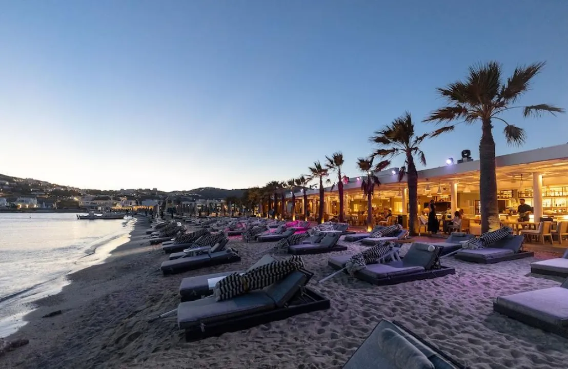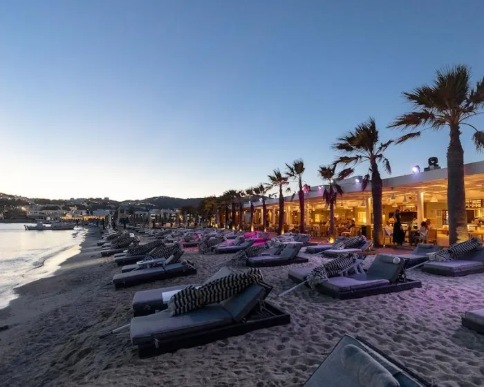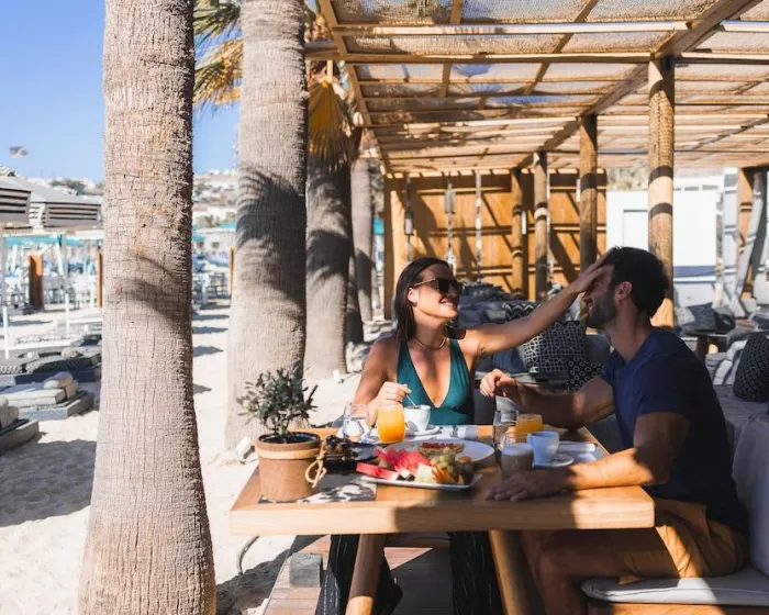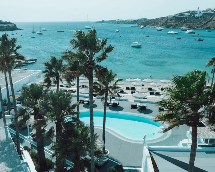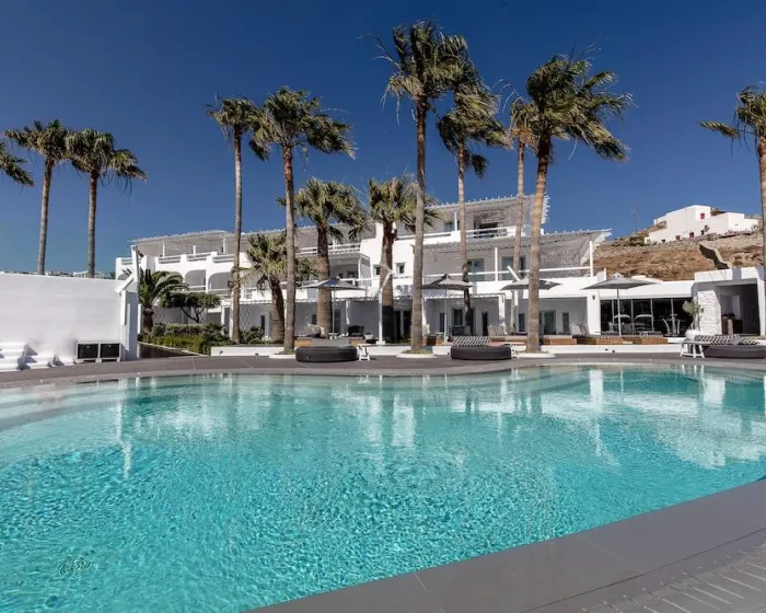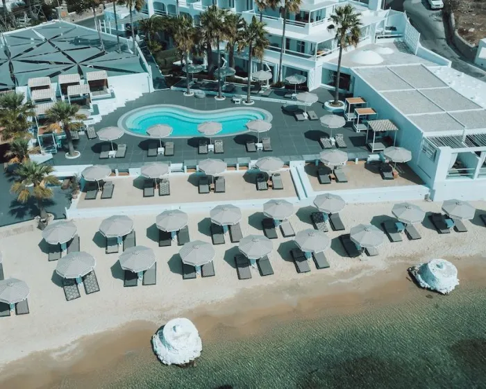 Hotel se nalazi na privilegovanoj lokaciji direktno na peščanoj plaži zaliva Ornos, u blizini lokalnih restorana i barova. Gosti lako mogu stići do autobuskih stanica za odlazak do turističkog centra grada Mikonosa, koji je udaljen samo 3 km. Aerodrom Mikonos je udaljen oko 2 km.