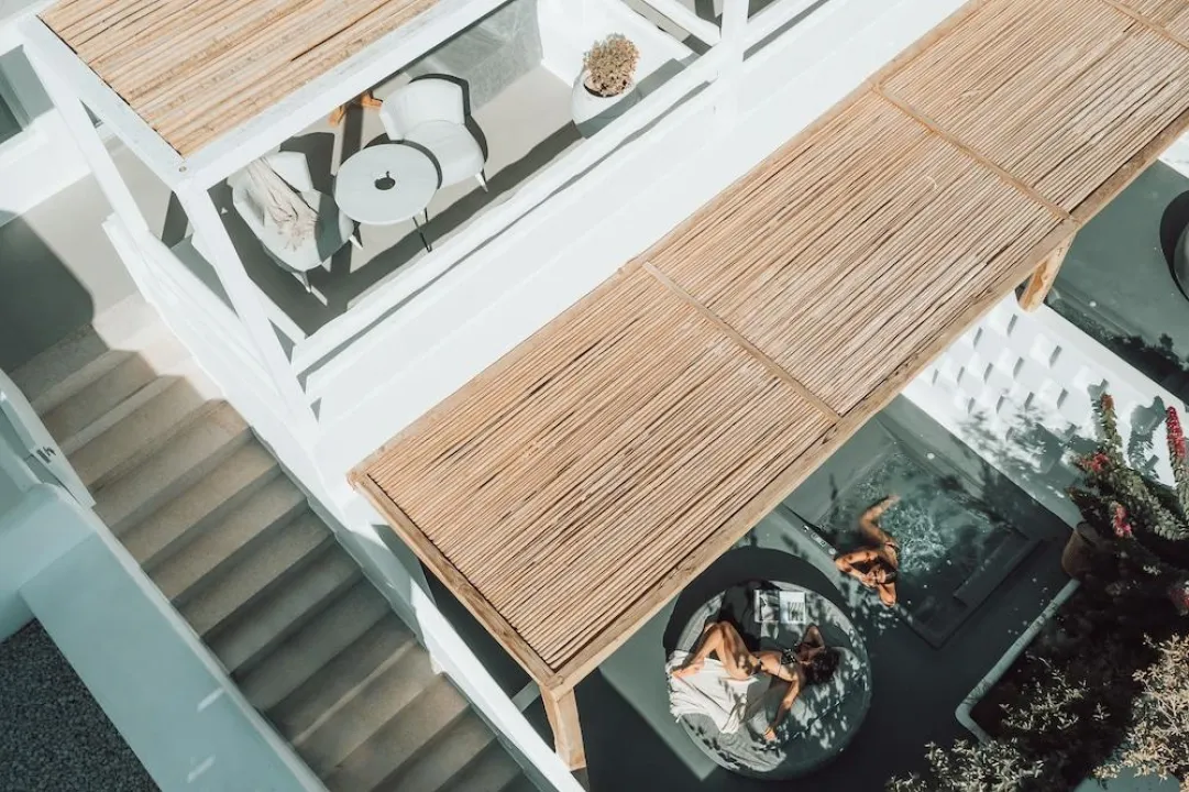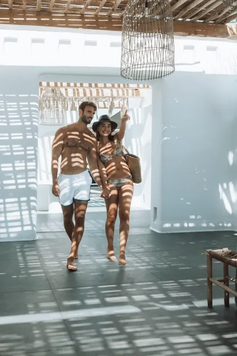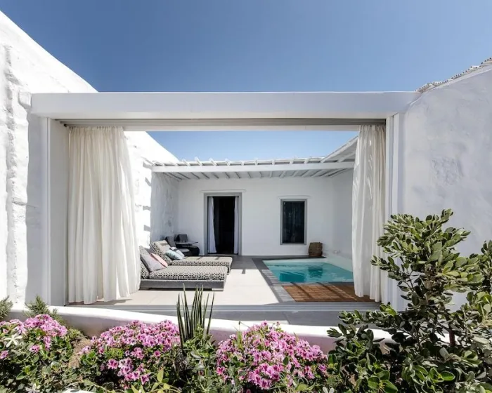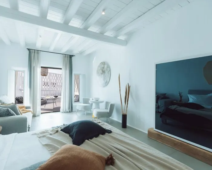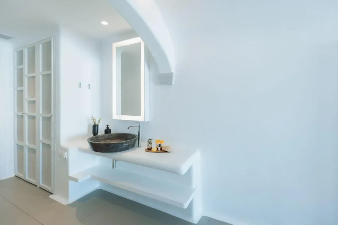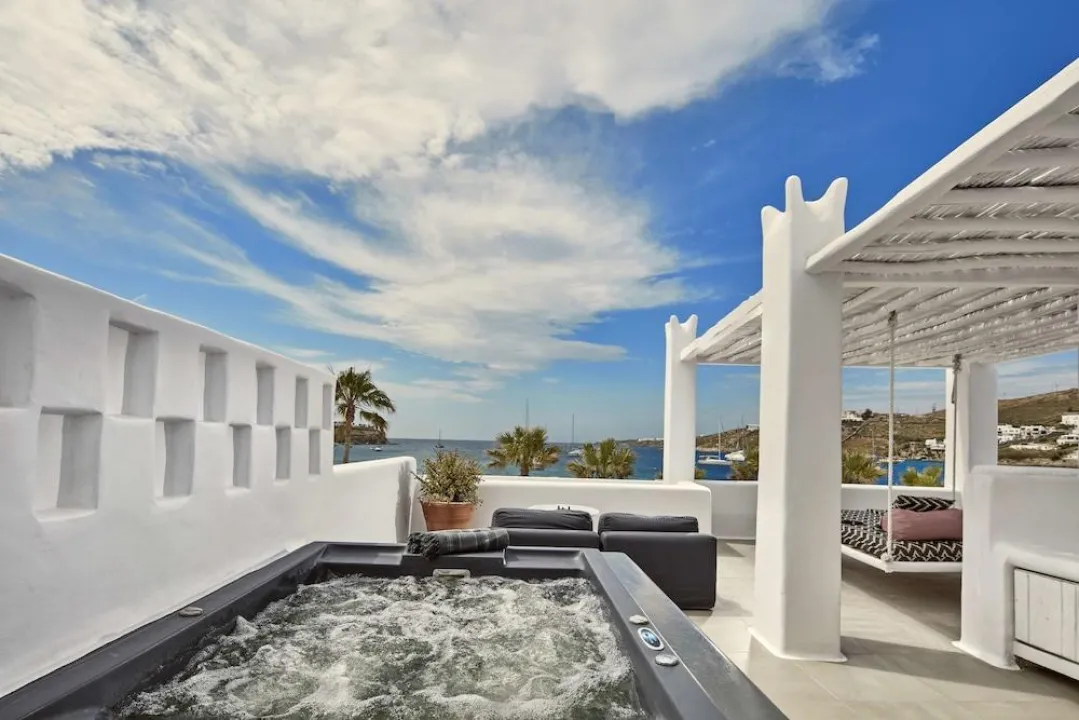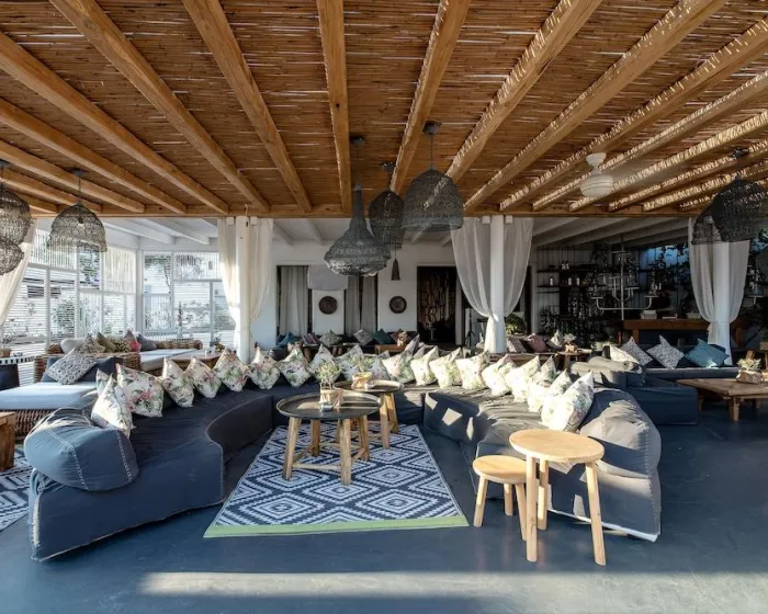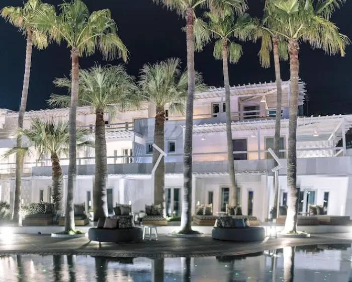 Hotel se nalazi na privilegovanoj lokaciji direktno na peščanoj plaži zaliva Ornos, u blizini lokalnih restorana i barova. Gosti lako mogu stići do autobuskih stanica za odlazak do turističkog centra grada Mikonosa, koji je udaljen samo 3 km. Aerodrom Mikonos je udaljen oko 2 km.