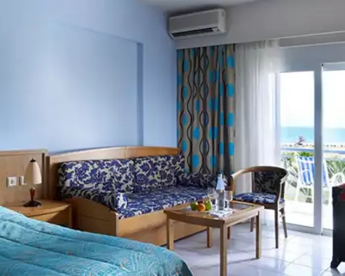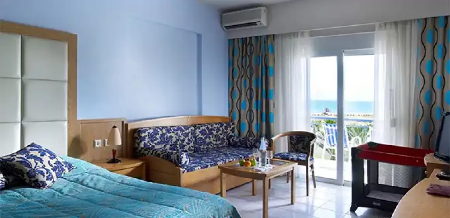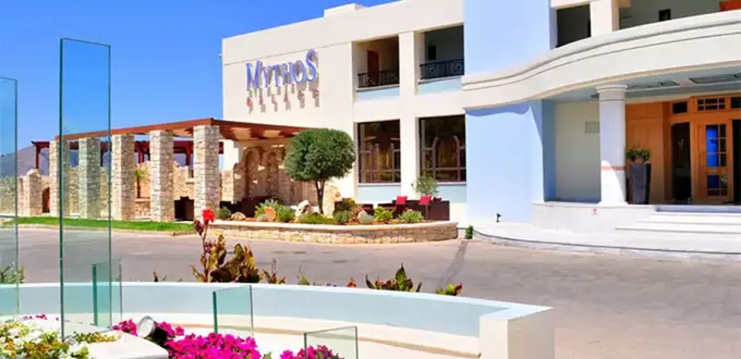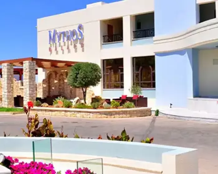 Hotel Mythos Palace Resort and Spa se nalazi na peščanoj plaži u mestu Kavros, na oko 20 kilometara udaljenosti od grada Retimno i na oko 45 kilometara od aerodroma u Hanji. Ovaj luksuzni hotel ima ukupno 204 sobe. Hotelska peščana plaža nosi oznaku plave zastavice. Usluga je all inclusive.Korišćenje klima-uredjaja je uključeno u cenu aranžmana.Ishrana: doručak, ručak i večera - švedski sto.
