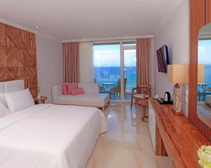 Sobe su opremljene klima uređajem, centralnim grejanjem i ventilatorom. Većina jedinica uključuje balkon sa pogledom na more, gde gosti mogu opustiti se i provesti neko vreme. Gosti će sigurno imati dobar san na bračnom krevetu. Sef, minibar i radni sto su takođe dostupni. Dodatne mogućnosti uključuju mini frižider i aparat za kafu/čaj. Telefon, TV, alarm i WiFi (bez dodatne naplate) obezbeđuju optimalnu udobnost. Papuče su uključene. Kupatila su opremljena tušem. Fen za kosu, bade mantili i telefon su obezbeđeni. Kao dodatna pogodnost, kupatila pružaju kozmetičke proizvode. Kupatila sa prilazom u invalidskim kolicima takođe se mogu rezervisati. Resort ima sobe za nepušače.