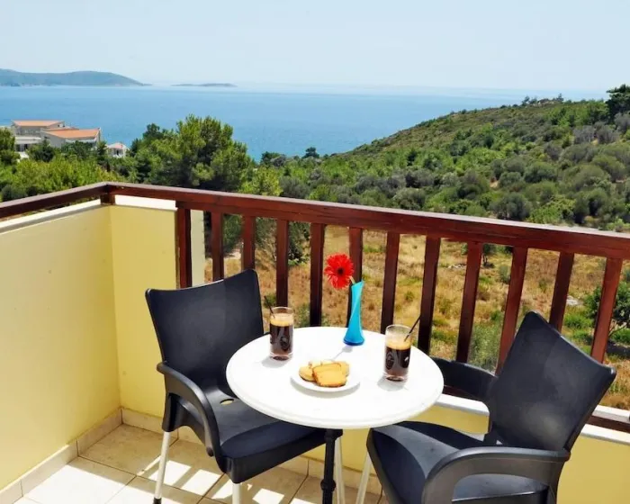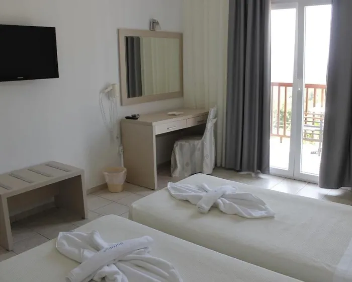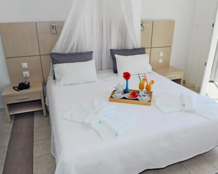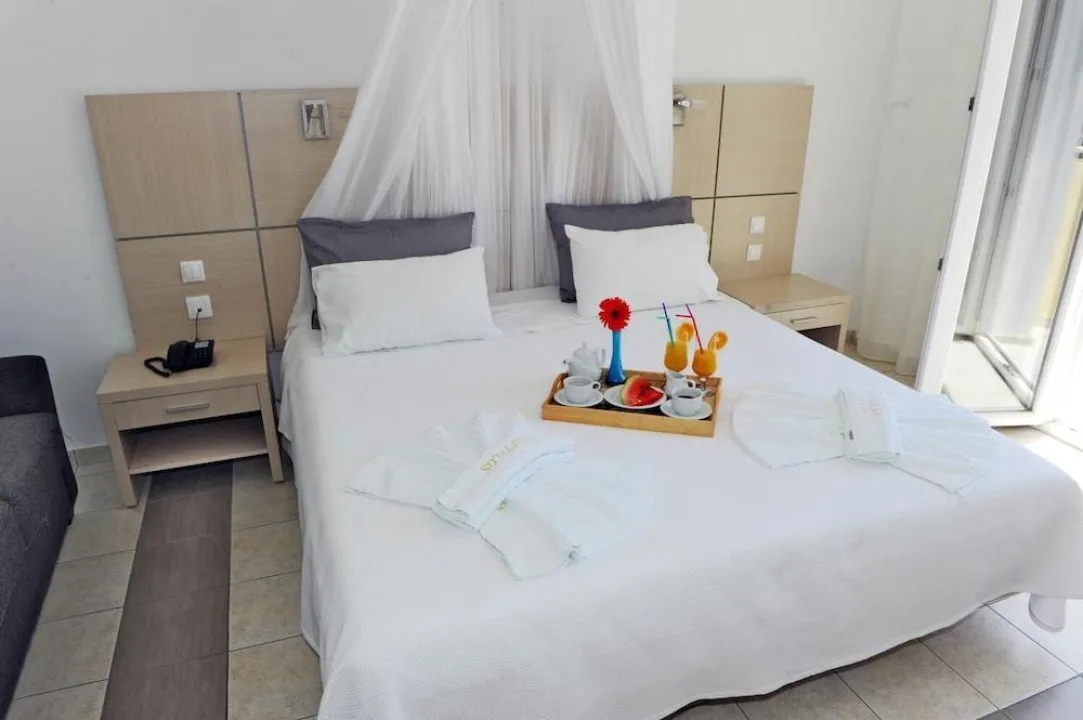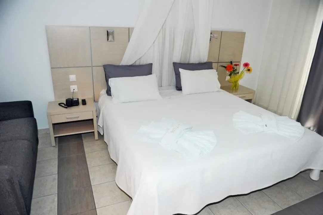 Klima uređaj i centralno grejanje osiguravaju da sobe održavaju udobnu temperaturu. Gosti mogu uživati u pogledu na more sa balkona ili terase. Sobe imaju bračni krevet i sofa krevet. Dostupne su odvojene spavaće sobe. Dodatni kreveti mogu biti zatraženi. Sef i minibar su takođe dostupni. Dodatne karakteristike uključuju frižider i čajnu/ kafu stanicu. Direktni telefonski poziv, televizor sa satelitskim/ kablovskim kanalima, radio i WiFi (bez dodatne naknade) pružaju sve neophodno za udoban odmor. Papuče su uključene. Fen za kosu i bade mantili su dostupni u kupatilima, koja su opremljena tuš kabinom i kadom. Mogu se rezervisati sobe prilagođene osobama sa invaliditetom. Hotel ima sobe za nepušače.