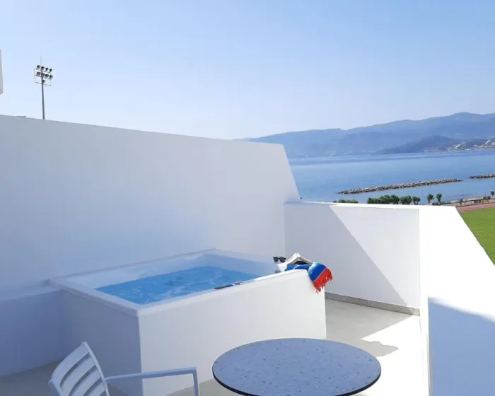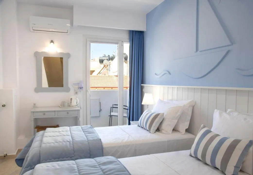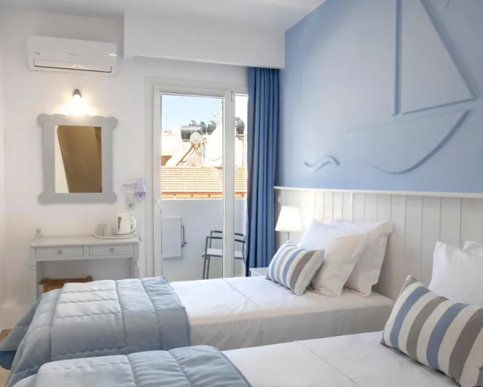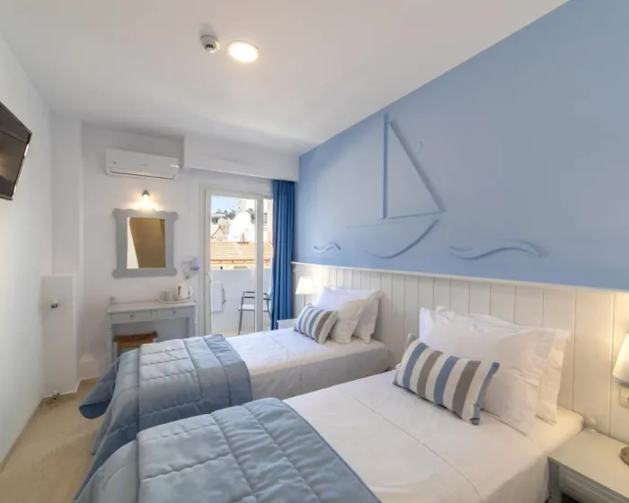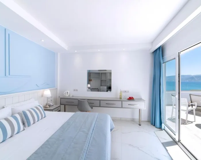 Centralno grejanje osigurava da sobe održavaju optimalnu temperaturu. Gosti mogu opuštajući se uživati u pogledu na more sa balkona ili privatne terase nekih soba. Sobe imaju bračni ili king-size krevet. Kreveti za decu i dodatni kreveti mogu se zatražiti za mlađe goste. Na raspolaganju su sef i mini bar. Dodatne pogodnosti uključuju frižider i čajnu/kafe stanicu. Telefon, satelitska televizija i WiFi pružaju sve essentials za udoban odmor. Fen za kosu i telefon su dostupni u kupatilima, koja su opremljena tuš kabinom. Kao posebna karakteristika, kupatila su opremljena i kozmetičkim proizvodima i izborom peškira. Gosti mogu takođe rezervisati sobe prilagođene za osobe sa invaliditetom sa kupatilima prilagođenim za invalidska kolica. Hotel ima sobe za nepušače i sobe za pušače.