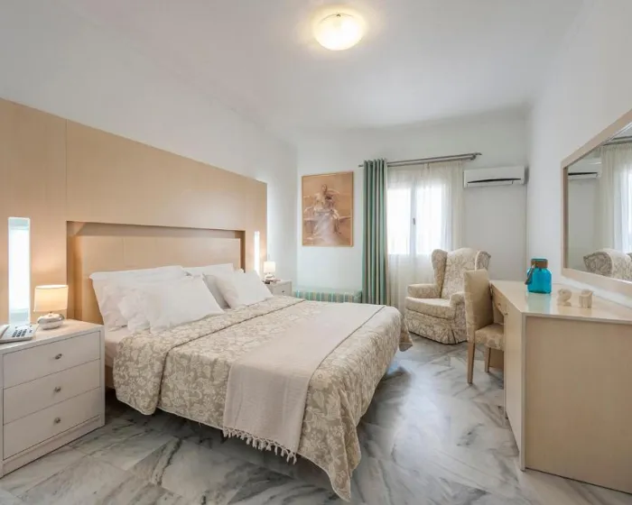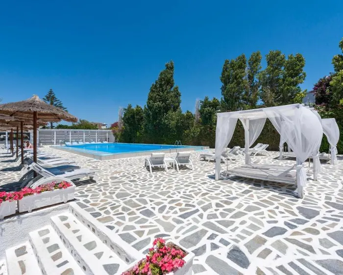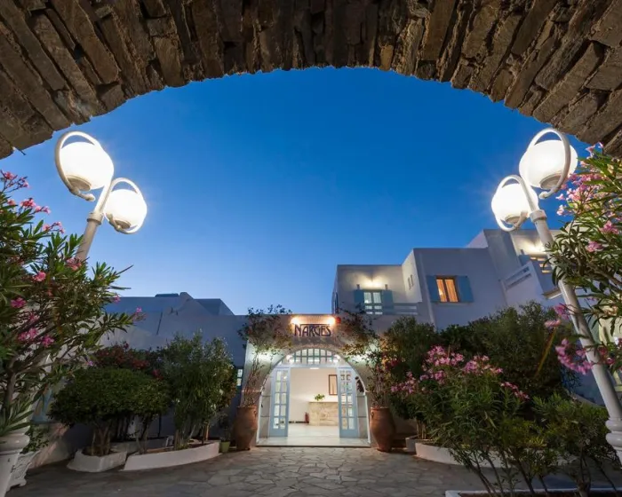 Narges Hotel Aliki Paros se nalazi na oko 50 metara udaljenosti od plaže Aliki, oko 12 km od Parikije i otprilike 18 km od Nause. Nalazi se u južnom delu Parosa, pored jedne od privlačnih plaža Alikija, poznate po pecanju. Aerodrom je udaljen samo oko 2 km od hotela.