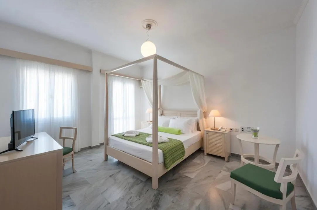 Sobe imaju kuhinju i kupatilo. Klima uređaj obezbeđuje ugodne temperature. Gosti mogu uživati u pogledu na vrt sa balkona ili terase. Sobe imaju bračni krevet, bračni krevet, bračni krevet ili kauč na razvlačenje. Za mlađe goste mogu se zatražiti dečiji kreveti i pomoćni ležajevi. Na raspolaganju su i sef, mini bar i radni sto. Gosti će takođe naći mini frižider koji je uključen u standardne karakteristike. Za udobnost gostiju obezbeđen je set za peglanje. Takođe su obezbeđeni telefon sa direktnim biranjem, TV, radio i ViFi (bez doplate). Papuče su uključene. Fen za kosu i telefon su obezbeđeni u kupatilima, koja uključuju tuš i kadu. Za dodatnu udobnost u kupatilima, gostima se nude kozmetički proizvodi. Porodične sobe su dostupne roditeljima sa decom.