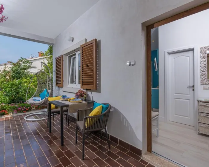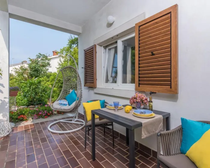 Sa pogledom na unutrašnje dvorište, Novi!!! NOVI RIVA LUKSUZNI STAN - sa suncem okupana terasa i velika bašta pruža smeštaj sa vrtom i tremom, oko 29 kilometara od Akvaparka Istralandija.