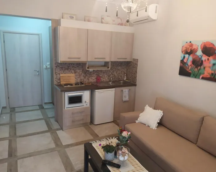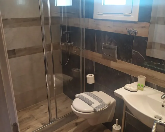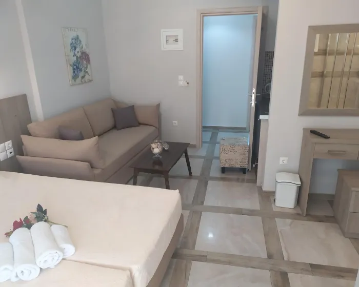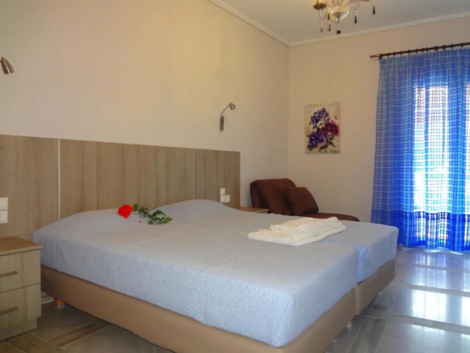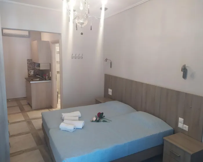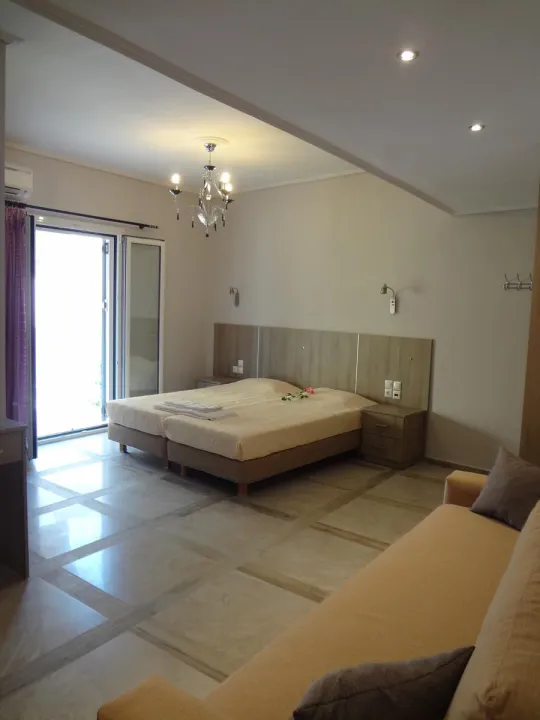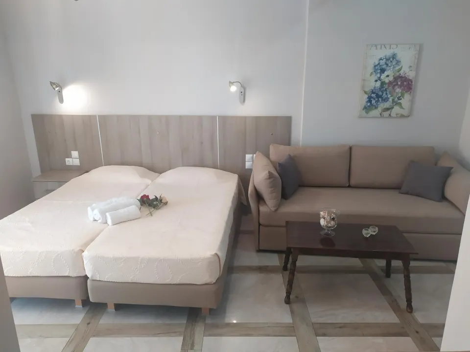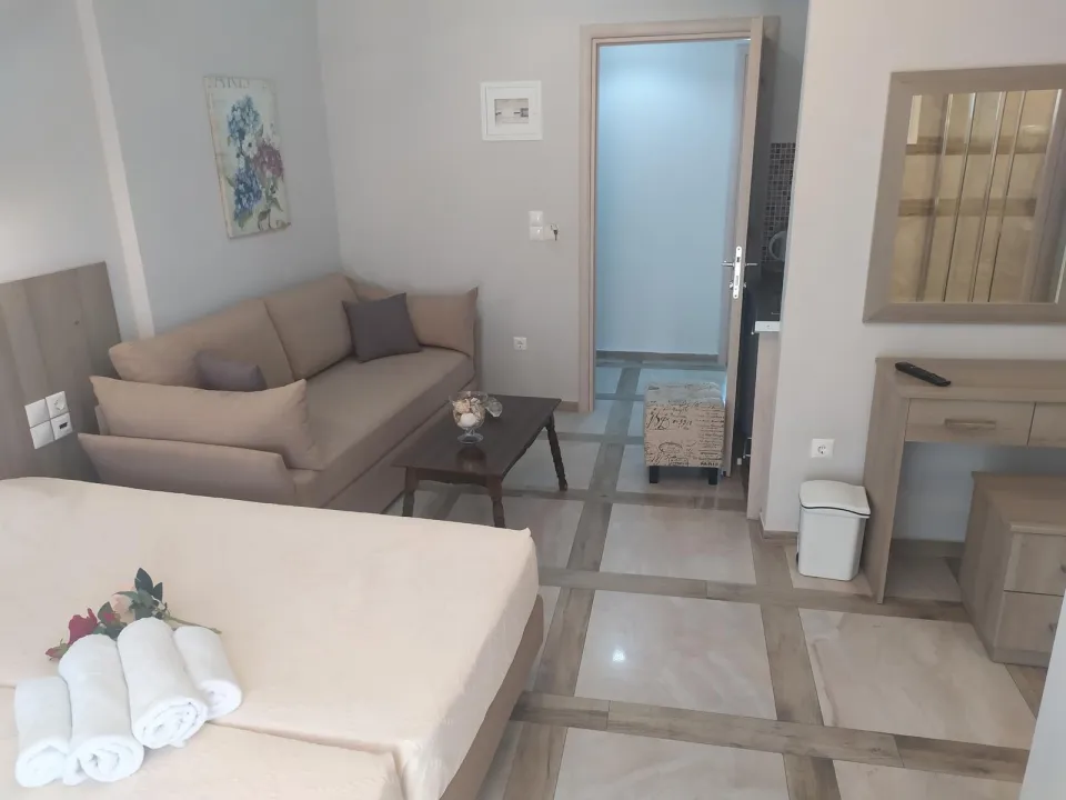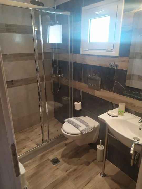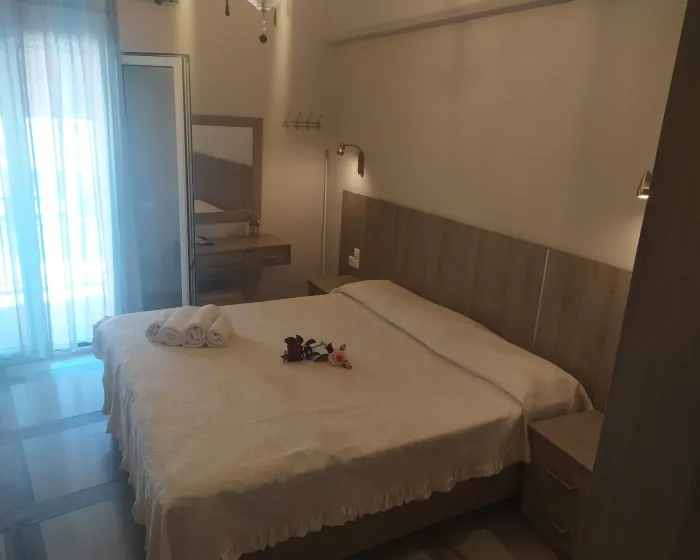 Moderne, moderno i moderno opremljene sobe sa dnevnim boravkom su opremljene bračnim krevetom, pomoćnim krevetom, dečijim krevecem (besplatno), pločicama, čajnikom (besplatno), internetom (besplatno), sefom (besplatno) i flat screen sat TV-om. Kupatilo sa tušem. Peškiri se menjaju 2 puta nedeljno.