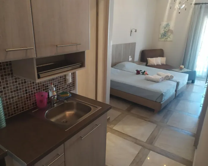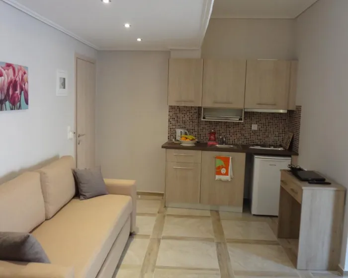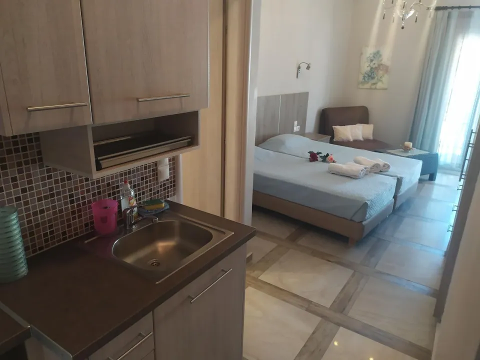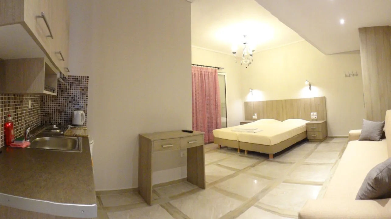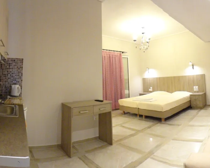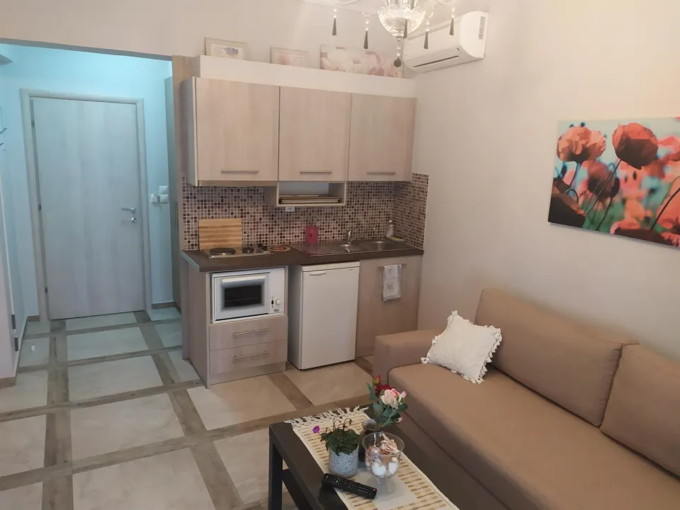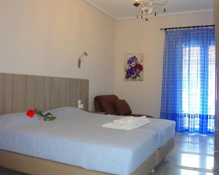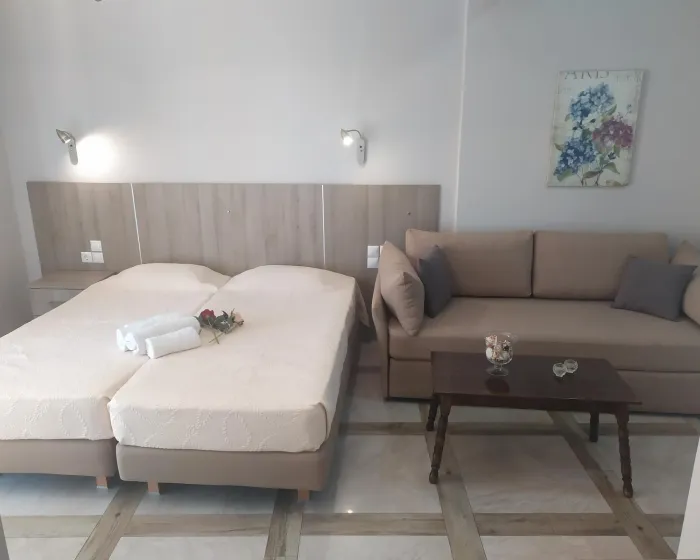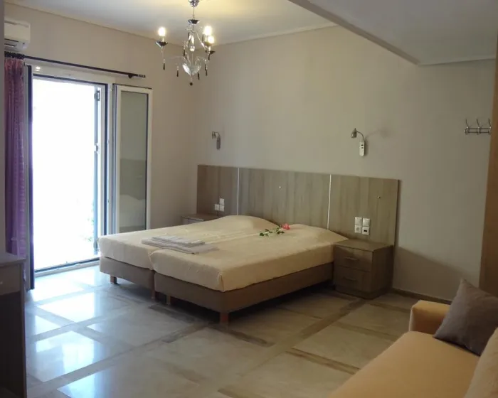 Moderne, moderno i moderno opremljene sobe sa dnevnim boravkom su opremljene bračnim krevetom, pomoćnim krevetom, dečijim krevecem (besplatno), pločicama, čajnikom (besplatno), internetom (besplatno), sefom (besplatno) i flat screen sat TV-om. Kupatilo sa tušem. Peškiri se menjaju 2 puta nedeljno.