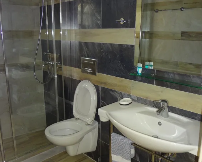 Moderne, moderno i moderno opremljene sobe su opremljene jednokrevetnim ili dvokrevetnim krevetom, pomoćnim krevetom, dečijim krevecom (besplatno), pločicama, čajnikom (besplatno), internetom (besplatno), sefom (besplatno) i flat screen sat TV-om. Kupatilo sa tušem. Peškiri se menjaju 2 puta nedeljno.
