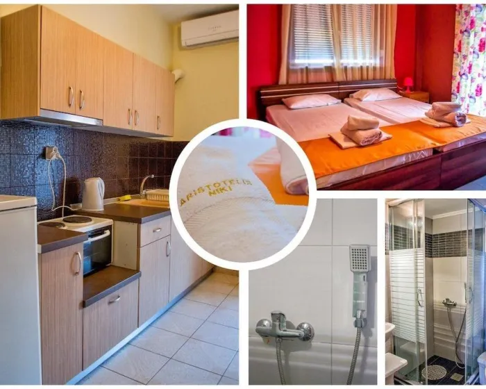 Niki Apartments smeštaj dočekuje goste na plaži Paralia Dionisiou, nedaleko od centra Nea Moudanje. U svojem sastavu ima apartmane koji mogu da ugoste do četiri osobe. Ovaj smeštaj ima lift i recepciju. Uslugama i sadržajima se ubraja usluga iznajmljivanja automobila, transfer usluga, usluga pranja veša i samoposluga pranja veša. Bežični pristup internetu u zajedničkim prostorijama omogućava gostima da ostanu povezani. Turistički biro nudi pomoć pri rezervaciji izleta. Vrt pruža dodatni prostor za odmor i opuštanje na otvorenom. Parking mesta su dostupna gostima koji putuju automobilom (bez dodatnih troškova).