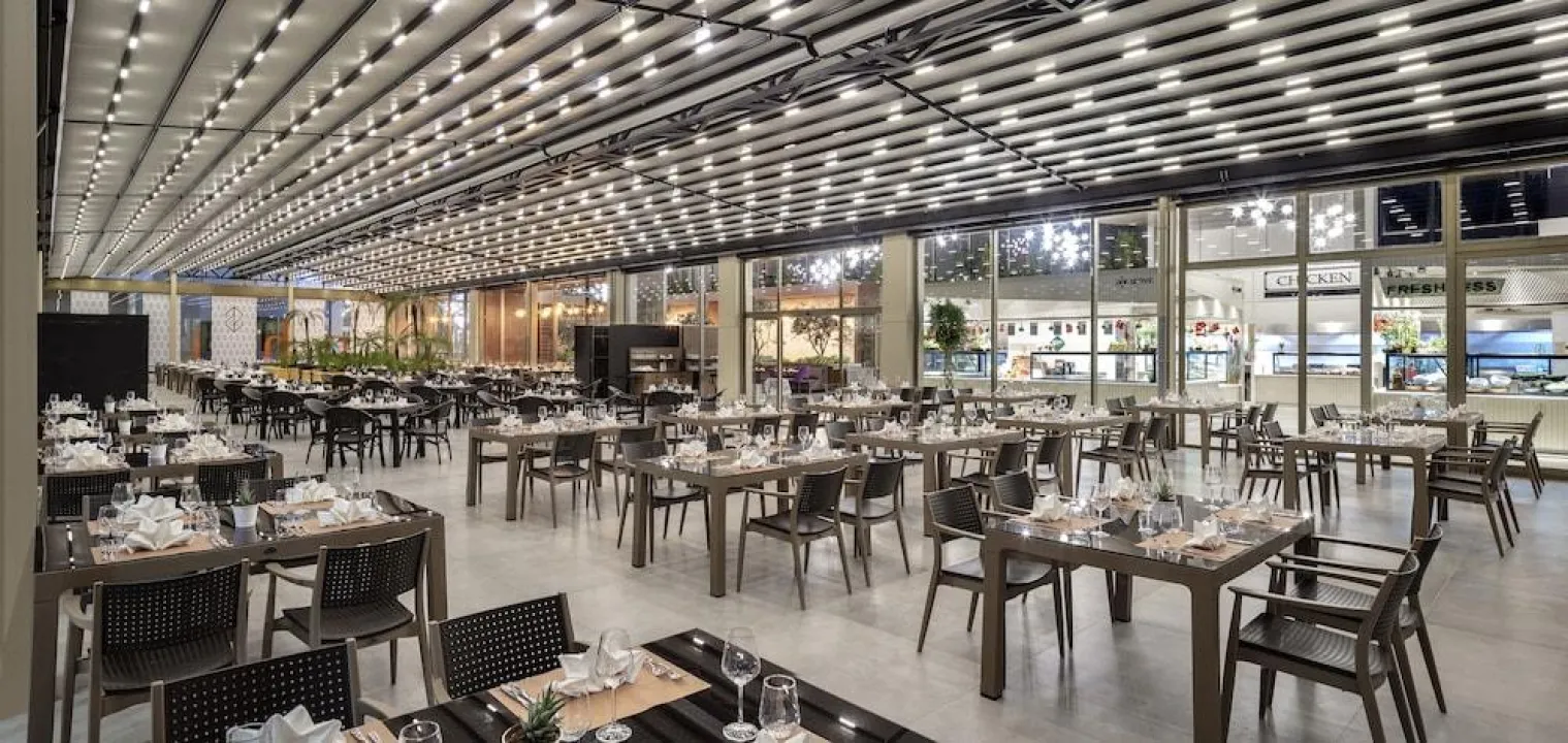 Objekti za ishranu uključuju kafeteriju, bar, lobi bar i piano bar. Gosti mogu uživati u svojim ukusima u 7 restorana (ne pušenje, švedski sto i a la carte). Osvježavajuća pića u plažnom baru su savršen način da uživate u toplom vremenu. Mogućnosti za ishranu uključuju noćenje sa doručkom i polupansion. Doručak za rane ptice i kasne sanjalice, ručak i večera privlače goste širokim izborom jela. Obroci na dijeti, bez glutena, dečija jela, organska hrana, halal hrana, bez laktoze i veganska hrana mogu se pripremiti na zahtev. Dostupna je i hrana za bebe. Hotel takođe nudi užine. Show cooking je posebno atraktivna atrakcija. Meni pića uključuje različite alkoholna i bezalkoholna pića, kao i omiljene marke u kući.