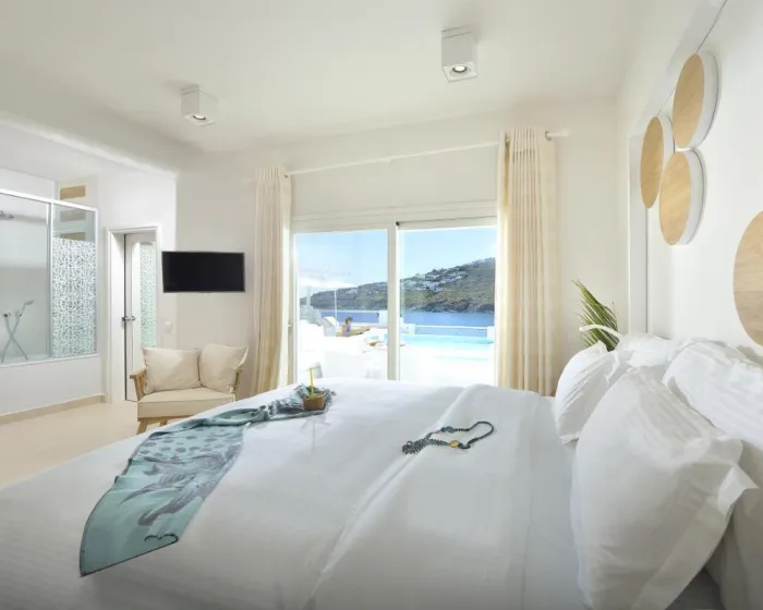 Sobe su opremljene klima uređajem i centralnim grejanjem. Gosti mogu uživati u pogledu na more sa balkona ili terase. Sobe imaju krevet queen veličine i sofu na razvlačenje. Dodatni kreveti mogu biti zatraženi. Takođe su dostupni sef, minibar i radni sto. Dodatne pogodnosti uključuju frižider i čajnu/kafu stanicu. Pegla se obezbeđuje radi gostove udobnosti. Direktni telefonski poziv, televizor sa satelitskim/kablovskim kanalima, radio, CD plejer, DVD plejer i WiFi (bez dodatne naplate) su takođe dostupni. Uveče, usluga skidanja kreveta omogućava gostima dodatnu udobnost. Papuče su uključene. Kupatila su opremljena tušem, kadom i đakuzijem. Fen za kosu i bade mantili su dostupni za svakodnevnu upotrebu. Za dodatnu udobnost u kupatilima, gostima se nude kozmetički proizvodi. Gosti takođe mogu rezervisati sobe prilagođene osobama sa invaliditetom sa prilagođenim kupatilima za invalidska kolica. Hotel ima porodične sobe, sobe za nepušače i sobe za pušače.