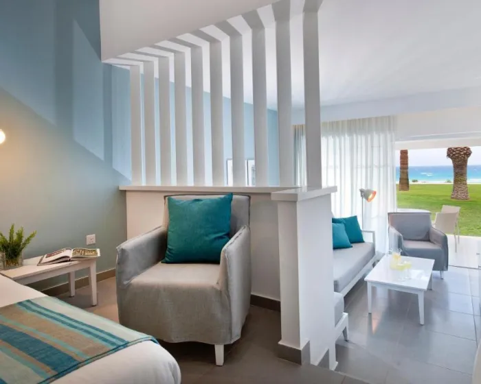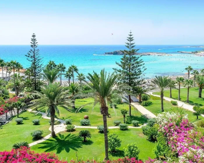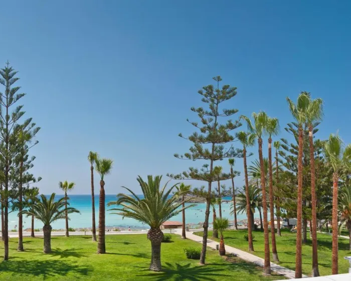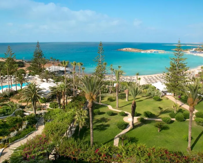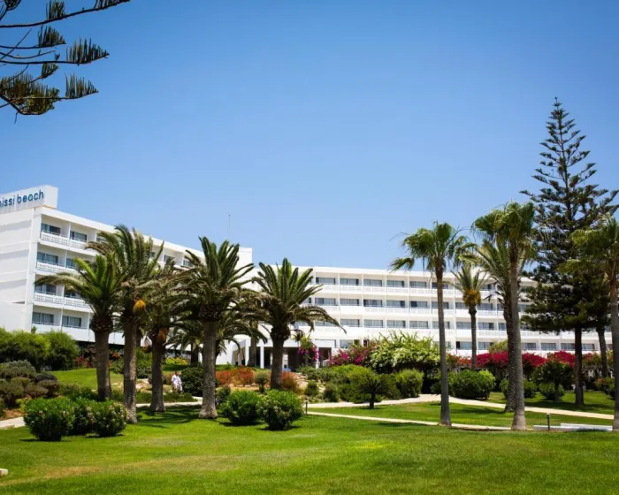 Nissi Beach Resort Ayia Napa - Nalazeći se usred 100.000 m² parkova, ovaj hotelski i bungalovski kompleks se direktno nalazi pored široke plaže Nisi, koja je jedna od najlepših peskovitih plaža na Kipru. U blizini ostrvo Nisi, pruža zaštitu raznim vrstama ptica. Protivni grad Aiya Napa, nudi obilje prodavnica, restorana, kafića i dodatnih zabavnih mesta oko 3 km zapadno od hotelskog kompleksa.
