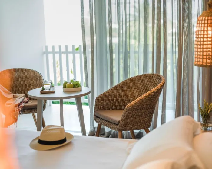 Klima uređaj i centralno grejanje osiguravaju da sobe održavaju udobne temperature. U većini jedinica, gosti mogu uživati u pogledu na more sa balkona ili terase. Sve sobe su sa tepihom i imaju bračni krevet, king size krevet ili kauč na razvlačenje. Kreveti za decu i dodatni ležajevi mogu se zatražiti za mlađe goste. Sef, minibar i radni sto su takođe dostupni. Dodatne mogućnosti uključuju frižider i čajnu/kafu stanicu. Direktno biranje telefona, televizor sa satelitskim/kablovskim kanalima, radio i WiFi pružaju sve potrebno za udoban odmor. Gosti će takođe naći papuče u svojim sobama. Kupatila su opremljena tušem i kadom. Fen za kosu, bade mantili i telefon su dostupni za svakodnevnu upotrebu. Kozmetički proizvodi i izbor peškira pružaju dodatnu udobnost u kupatilima. Mogu se rezervisati sobe prilagođene za invalidska kolica. Odmaralište ima porodične sobe i sobe za nepušače.