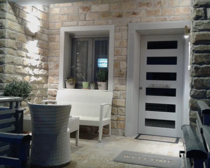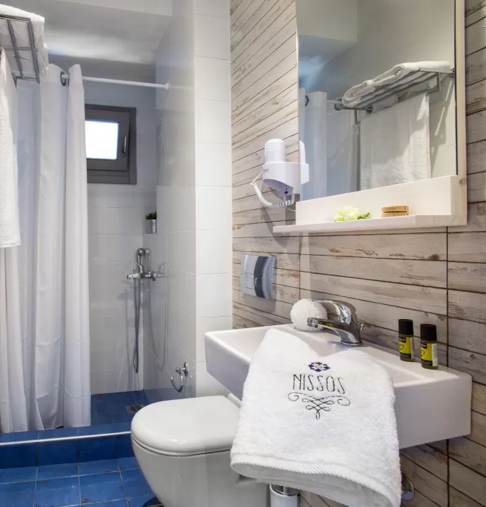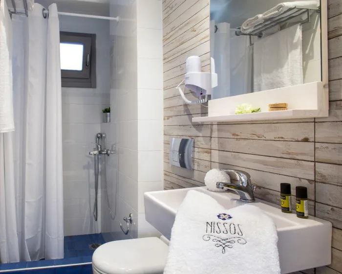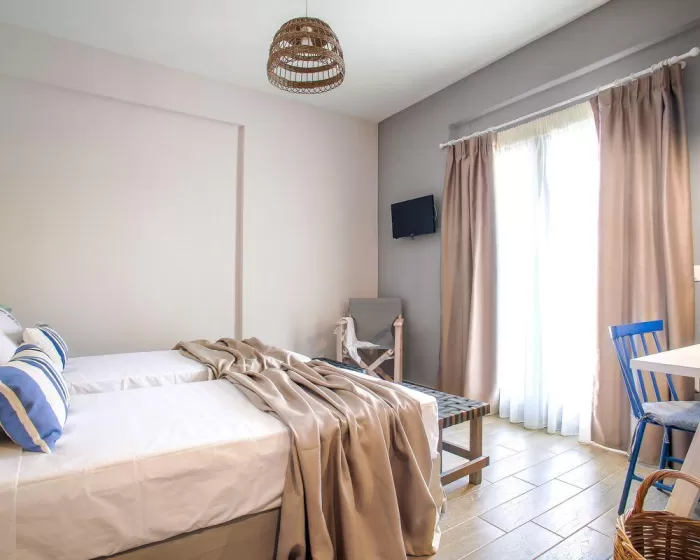 Vila Nissos Rooms Ammouliani se nalazi u centru grada i luke Amuljanija, nedaleko od svih turističkih sadržaja ostrva. Plaža je na 300 metara udaljenosti. U svom sastavu za smeštaj gostiju ima dvokrevetne i trokrevetne sobe, bez mini kuhinje i zabranjeno je unođenje opreme za spremanje hrane. Parking je pored smeštaja.