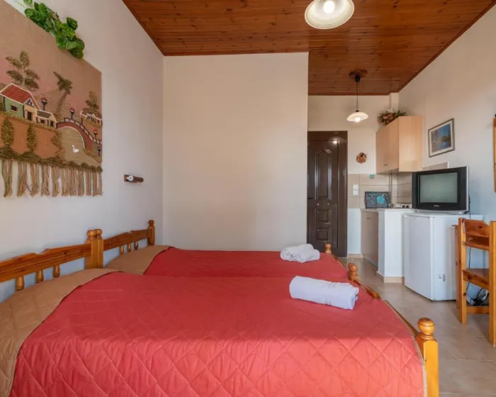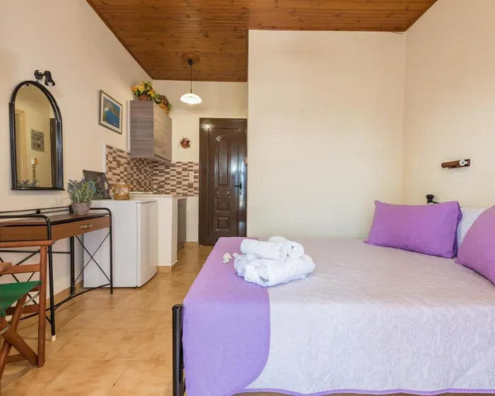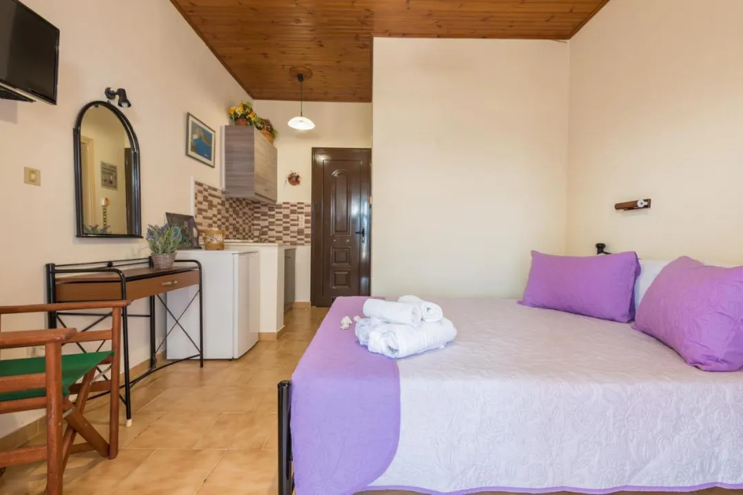 Otvoren ka balkonu, klimatizovan stan se sastoji od potpuno opremljene čajne kuhinje i televizora sa ravniom ekranom. Radi veće privatnosti, smeštaj ima privatni ulaz.