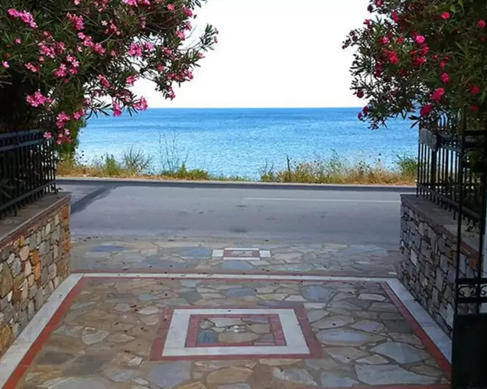Vila Noula Megali Amos Skiatos se nalazi u lepom mediteranskom vrtu, na odličnoj lokaciji, oko 1.5km od centra grada, preko puta plaže Megali Amos. Do centralnog dela ove prelepe plaže je udaljena oko 350m. Najbliži mini market je udaljen oko 250m, a restoran oko 650m. Noula Megali Amos Skiatos je idealna za mlade zbog blizine grada, ali i za porodice, jer je plaža u neposrednoj blizini, a veliki vrt i dvorište su na raspolaganju deci.