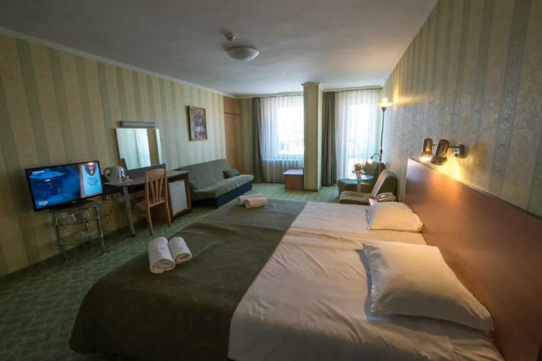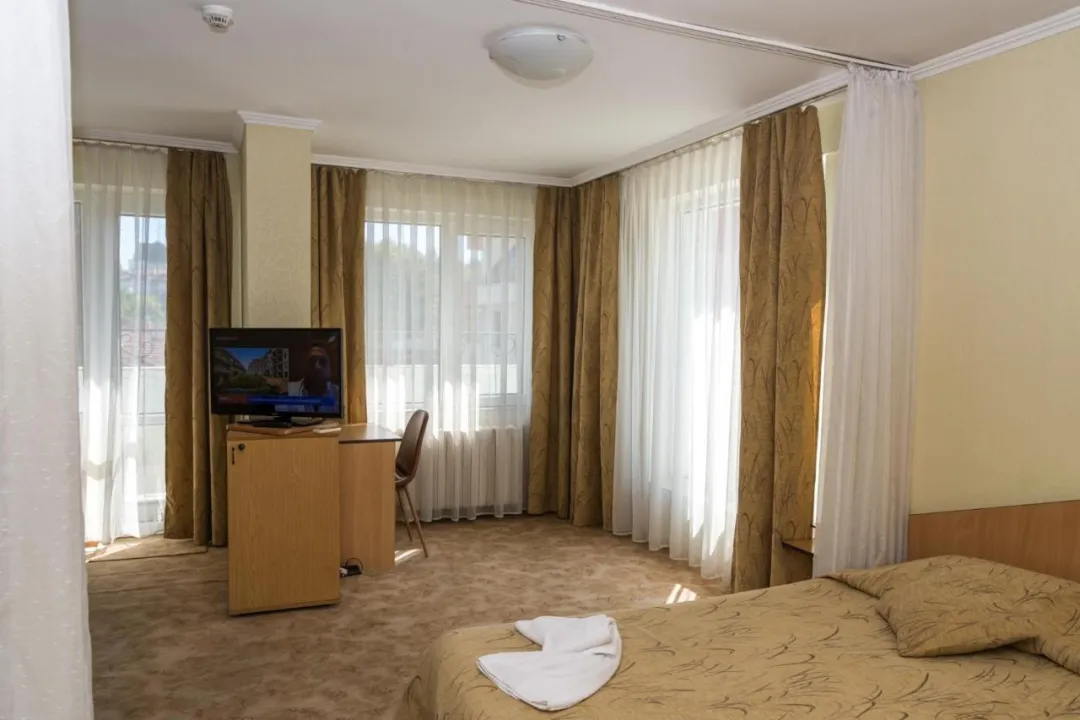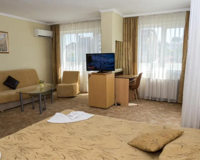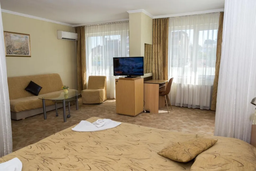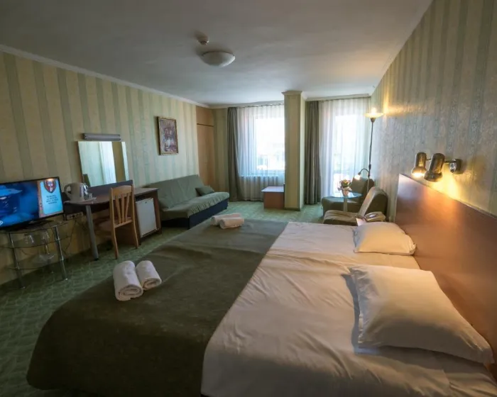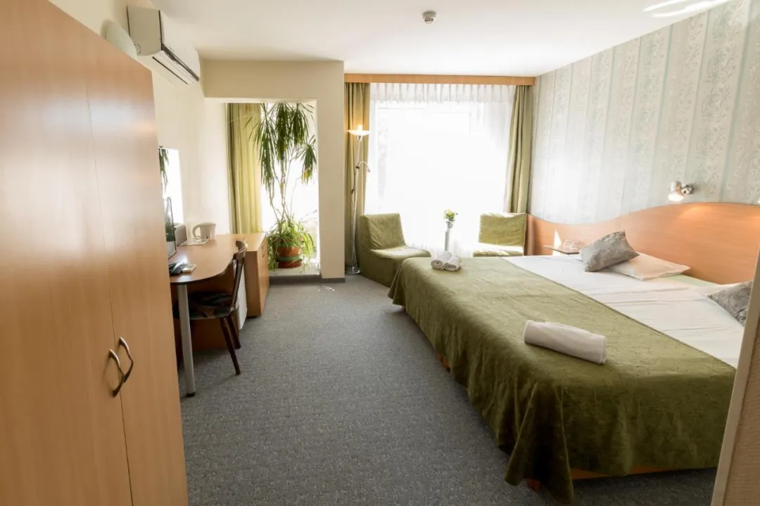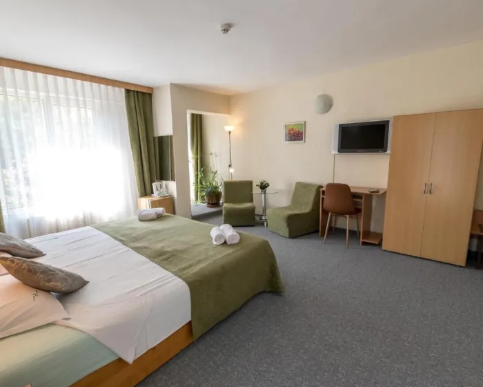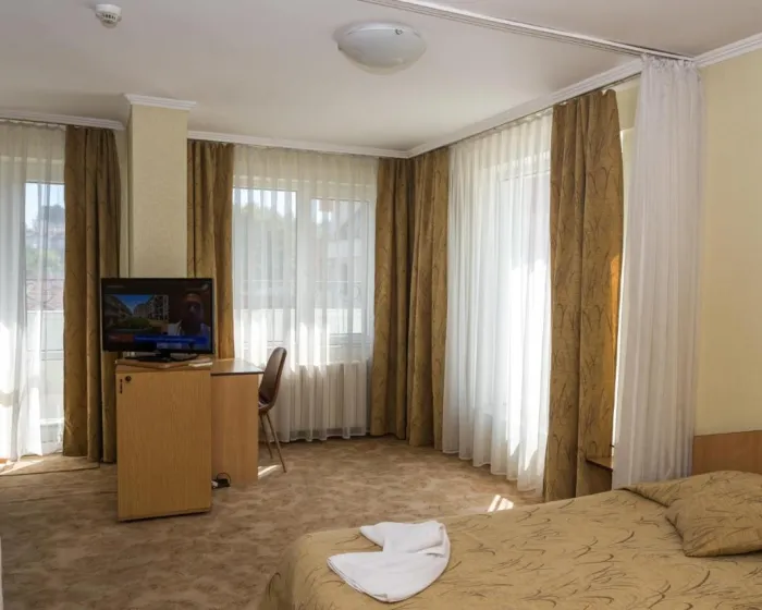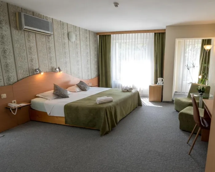 Centralno grejanje osigurava da sobe održavaju udobnu temperaturu. Većina soba ima balkon ili terasu kao standardnu funkciju. Sobe imaju bračni krevet i kauč na rasklapanje. Takođe su dostupni sef i mini bar. Gosti će pronaći mini frižider među standardnim funkcijama. Za praktičnost gostiju obezbeđeno je peglanje pantalona. Druge funkcije uključuju telefon, TV i WiFi (bez dodatne naknade). Kupatila su opremljena tušem i kadom, kao i fenom za kosu. Hotel ima porodične sobe i sobe za nepušače.