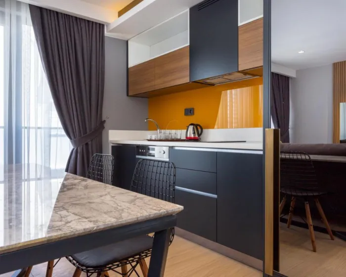 Centralno grejanje osigurava da sobe održavaju udobne temperature. Sobe imaju bračni krevet i sofa krevet. Dodatni kreveti mogu biti zatraženi. Sef obezbeđuje sigurno čuvanje lične imovine gostiju. Telefon i WiFi (bez dodatne naplate) su takođe obezbeđeni. Fen za kosu je dostupan u kupatilima. Apartmanski hotel ima porodične sobe i sobe za nepušače.