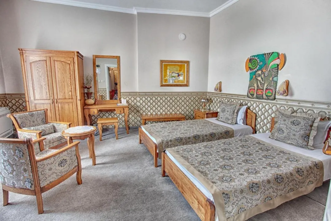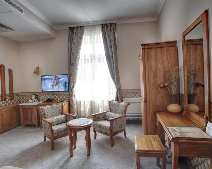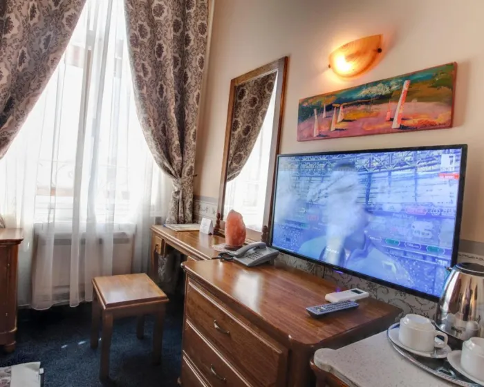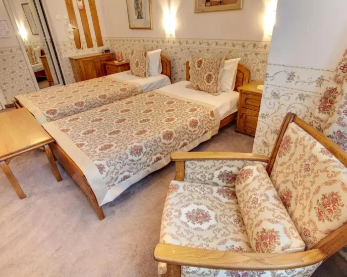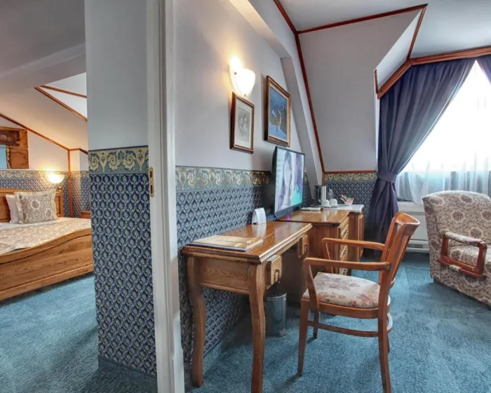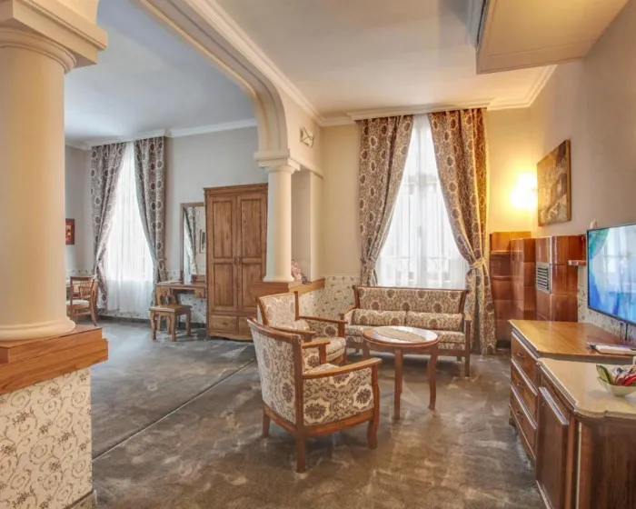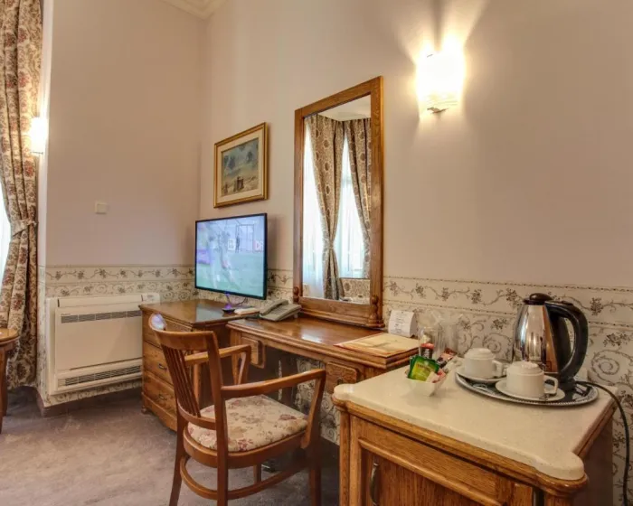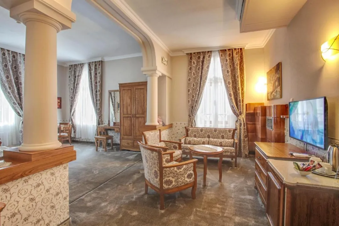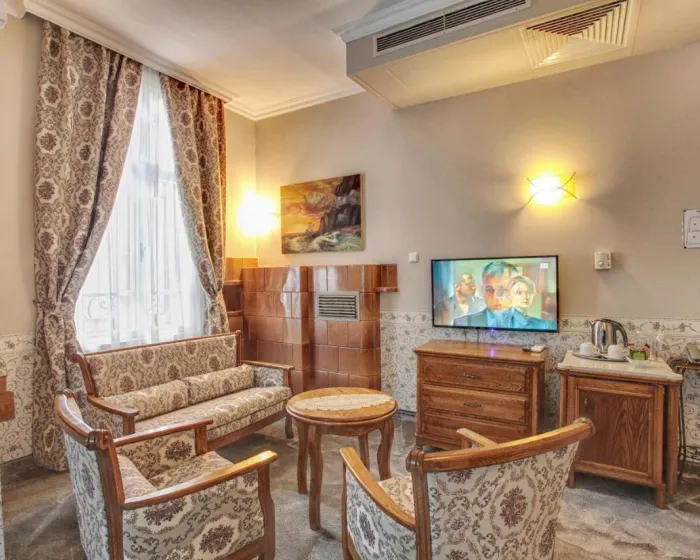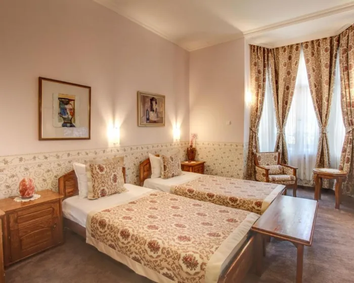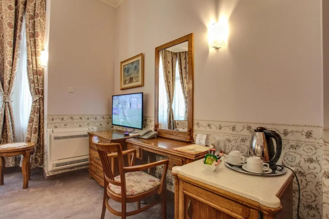 Klimatizovane sobe i apartmani imaju tepihe i stilski dekor u barokno-inspirisanom klasičnom stilu. Kupatilo sadrži fen za kosu. Hotel se nalazi u staroj zgradi i ima mali lift dodat 2018. godine.