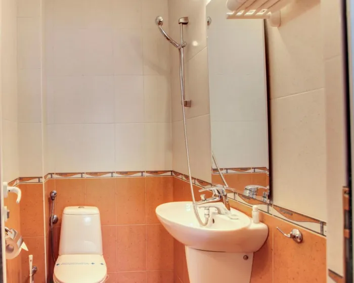Hotel ima mali lift za jednu osobu sa prtljagom ili dve osobe bez prtljaga.
