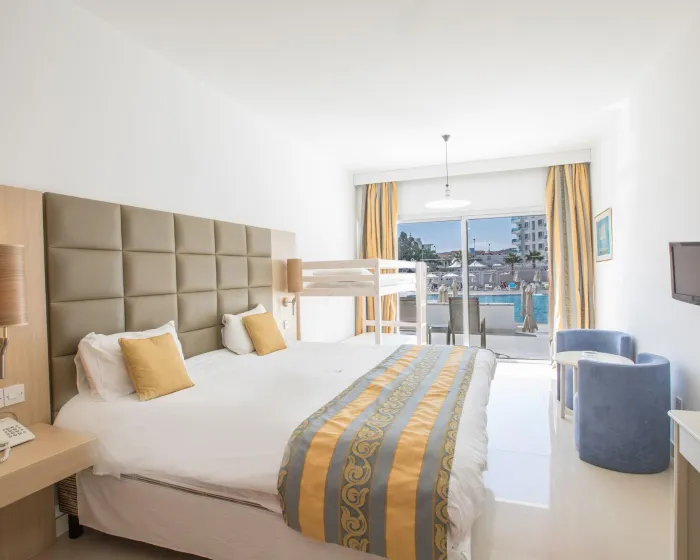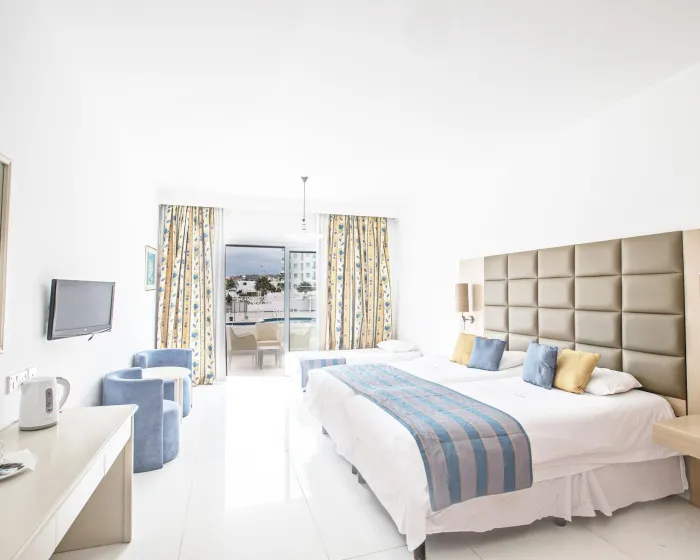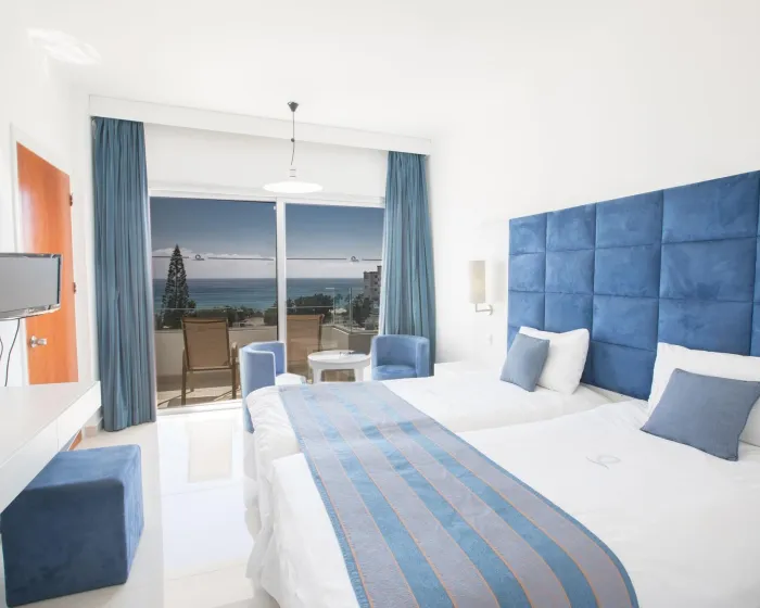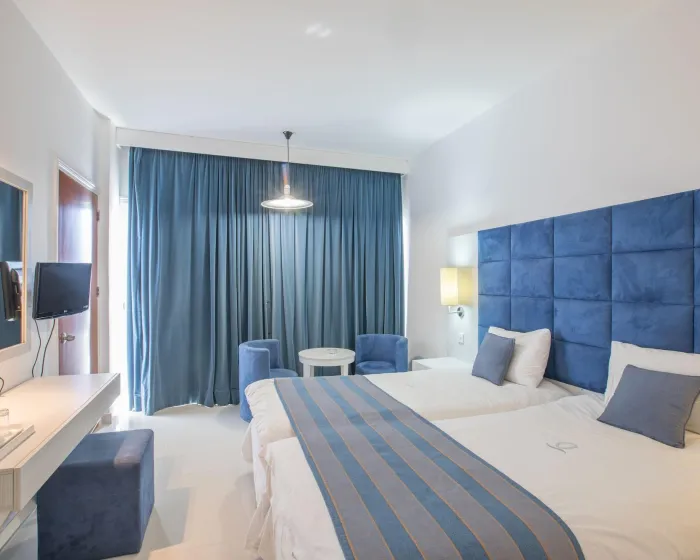Klima uređaj i centralno grejanje osiguravaju da sobe zadrže udobne temperature. U većini jedinica, gosti mogu uživati u pogledu na more sa balkona ili terase. Sobe imaju bračni krevet i sofu. Dodatni ležajevi se mogu zatražiti. Sef, minibar i radni sto takođe su dostupni. Dodatne karakteristike uključuju frižider, mini frižider i aparat za kafu/čaj. Takođe postoje pegla i presa za pantalone. Direktno telefoniranje, televizor ravnog ekrana, radio i WiFi (bez dodatnih troškova) pružaju sve neophodno za udoban odmor. Gosti mogu iskoristiti noćnu uslugu spremanja sobe. Fen za kosu i telefon dostupni su u kupatilima, koja su opremljena tušem i kadom. Kozmetički proizvodi i izbor peškira pružaju dodatnu udobnost u kupatilima. Mogu se rezervisati sobe prilagođene za osobe u invalidskim kolicima. Hotel ima family sobe, sobe za nepušače i sobe za pušače.