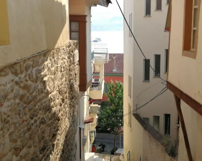 Smestaj u starom gradu sa pogledom na more nalazi se u Kavali, na 1,7 km od plaže Rapsani i na 2,3 km od plaže Perigiali, i nudi klimatizovan smestaj sa terasom i besplatnim bežičnim internetom. Objekat ima pogled na grad i unutrašnje dvorište, i nalazi se na 200 metara od Kuće Mehmeta Alija.