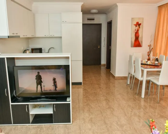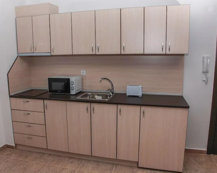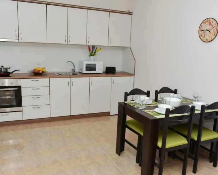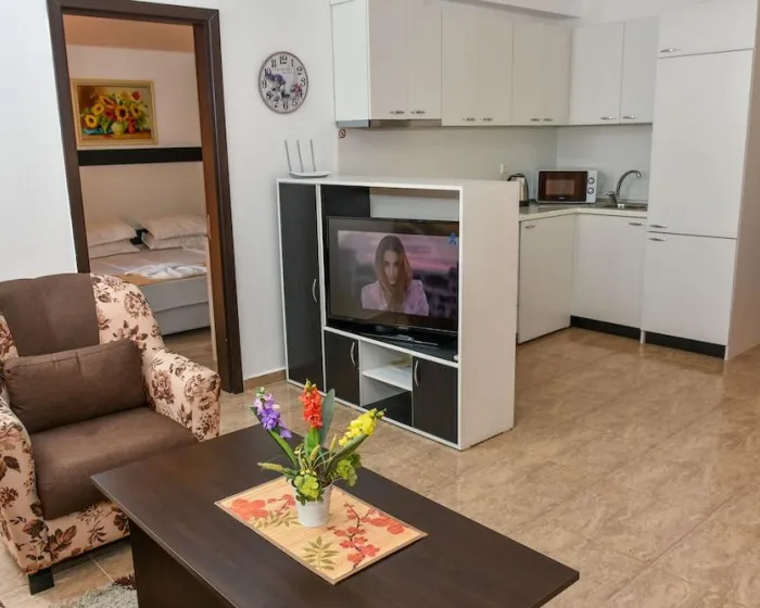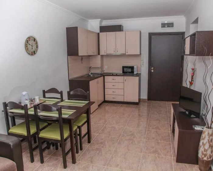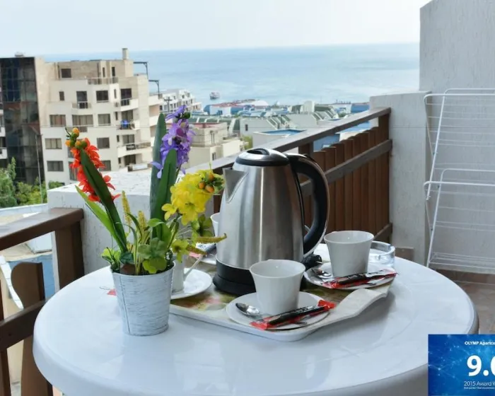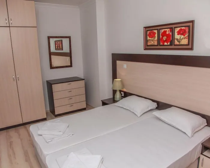 Sobe su opremljene klima uređajem i centralnim grejanjem. Gosti mogu uživati u pogledu na more sa balkona ili terase. Sobe imaju bračni krevet i sofu na razvlačenje. Dostupne su odvojene spavaće sobe. Kuhinja ima mini frižider. Takođe su obezbeđeni telefon, TV i WiFi (bez dodatne naknade). Kupatila su opremljena tušem. Kompleks ima porodične sobe i sobe za nepušače.
