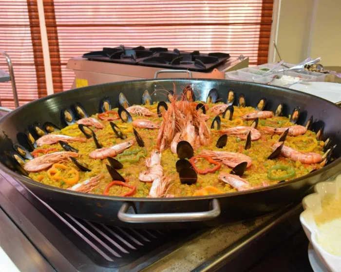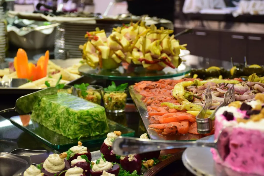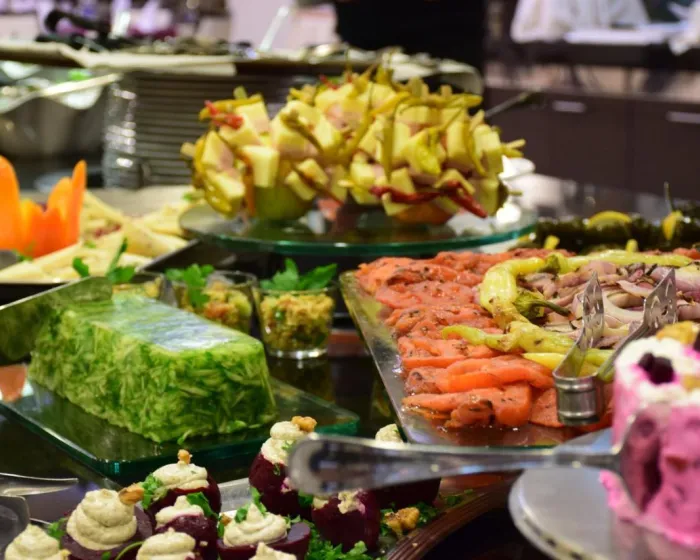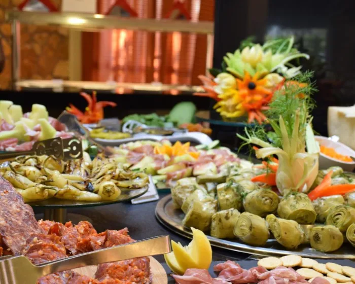 Sadržaji za obroke uključuju trpezariju, sobu za doručak, kafe i bar. Gosti mogu uživati u kulinarskim specijalitetima u nemalogom, klimatizovanom restoranu, koji pruža visoke stolice za decu. Osvežavajuća pića u baru na plaži su savršen način da uživate u toplom vremenu. Mogućnosti ishrane uključuju polupansion i pun pansion. Za doručak (kontinentalni), ručak i večeru, gosti sami služe sebe na bifeu ili biraju svoje omiljene specijalitete iz à la carte ponude (za ručak i večeru). Mesečne dijetalne obroke, obroke bez glutena, vegetarijanske obroke i dečije obroke mogu se pripremiti na zahtev. Kompleks takođe nudi posebne opcije za ishranu. Show cooking je posebno zanimljiva atrakcija. Kompleks nudi izbor alkoholnih i bezalkoholnih pića.