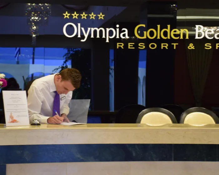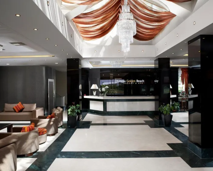 Olympia Golden Beach Resort & SPA okružen morem i brdima, nalazi se na 3 km od centra grada Kastro i na kratkoj udaljenosti od nekoliko znamenitosti. Gosti mogu posetiti Olimpiju, koja je udaljena manje od sat vremena vožnje, dok je drevna Ilida udaljena manje od 30 minuta vožnje automobilom od hotela. Dalje atrakcije u blizini uključuju Kastro (Castle), do kog se može stići za manje od 5 minuta i Agiju (Saint) Eleousa dostupnu za manje od 15 minuta. Dodatno se nalazi na oko 400 metara od plaže.