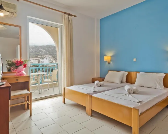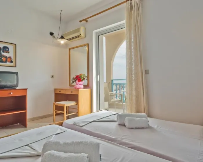 Centralno smešten u Pigadiji, ovaj hotel je udaljen oko 500 metara od peščane plaže.
