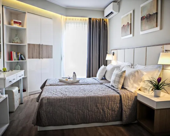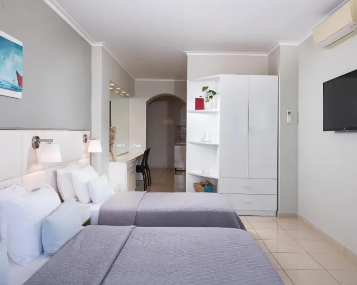Standardna soba oko 25-30m², s pogledom na vrtove ili more, koja se sastoji od jednog prostora (bračni ili dva kreveta sa kaučem) sa malom kuhinjom i prostorom za sedenje, dizajnirana za 2-3 osobe.