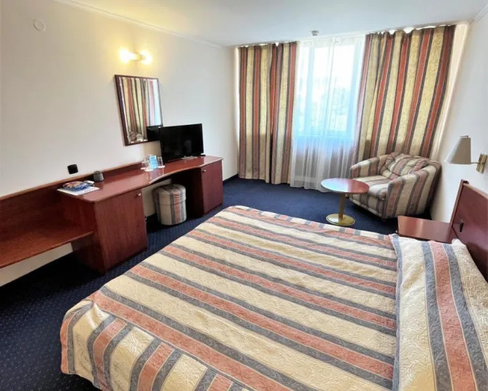 Sobe su opremljene klima uređajem i centralnim grejanjem. Sve sobe su sa tepihom i uključuju bračni krevet i sofu. Takođe su dostupni sef, minibar i radni sto. Gosti će takođe naći mesto za pripremu čaja/kafe među standardnim sadržajima. Pegla je obezbeđena radi gostove praktičnosti. Telefon, TV i WiFi (bez dodatne naplate) su takođe obezbeđeni. Dnevne novine su dostupne gostima u sobama. Kupatila su opremljena tušem i kadom, kao i fenom za kosu. Kao poseban dodatak, kupatila su opremljena kozmetičkim proizvodima i izborom peškira. Hotel ima porodične sobe i sobe za nepušače.