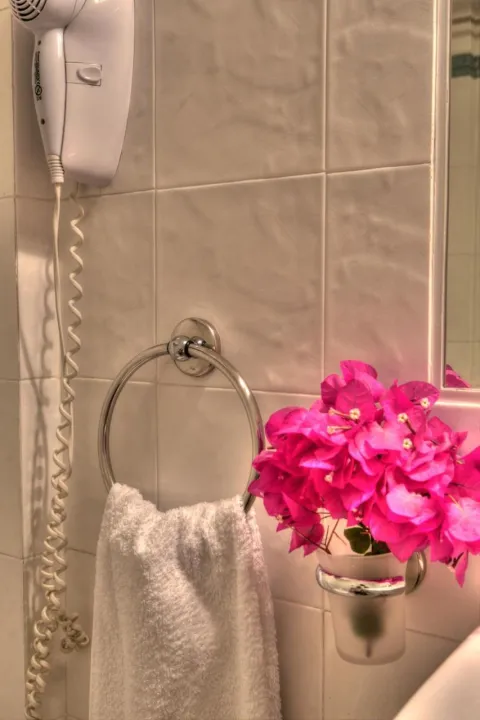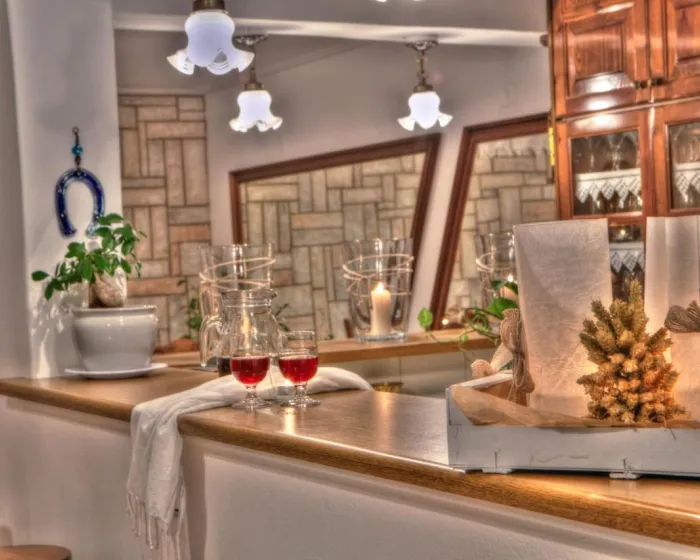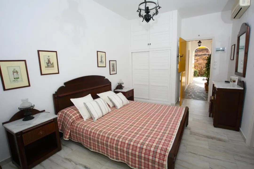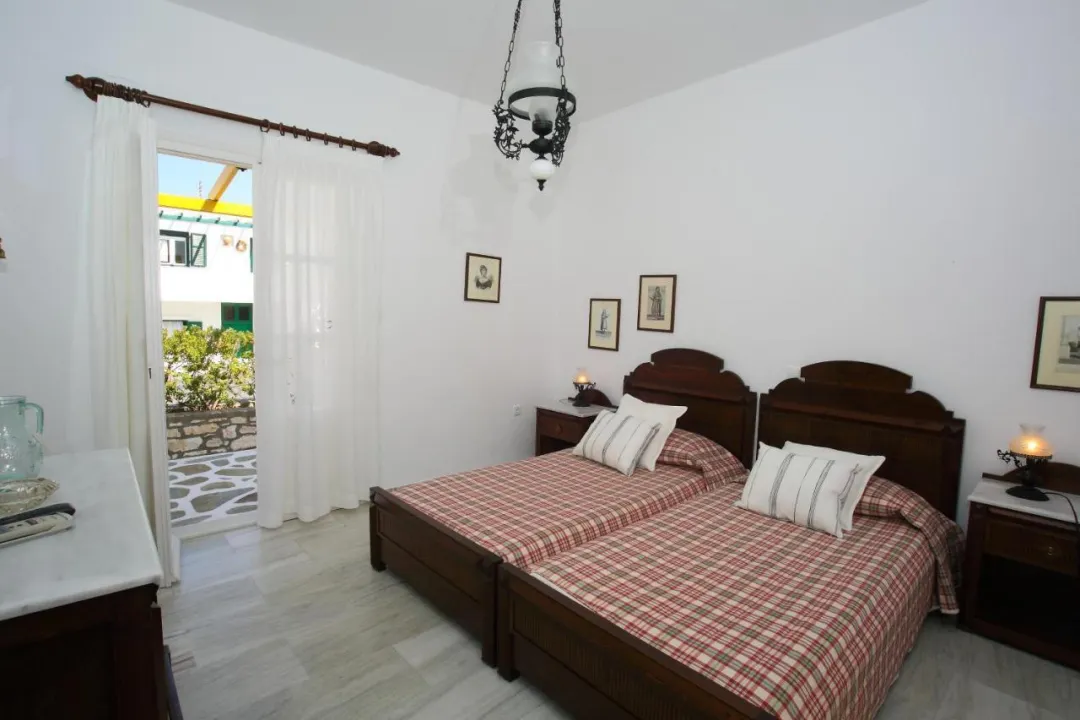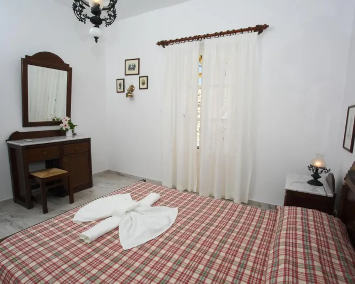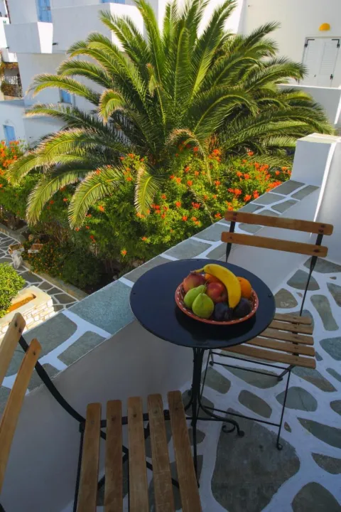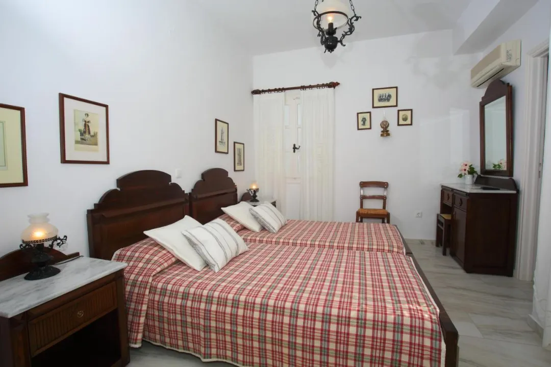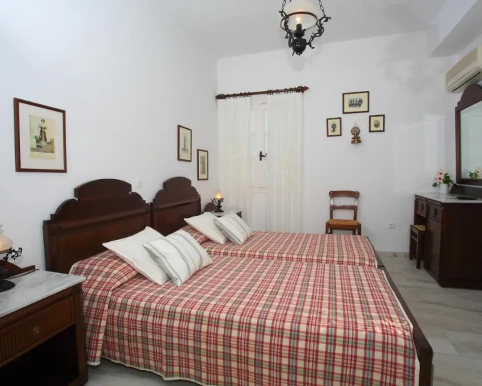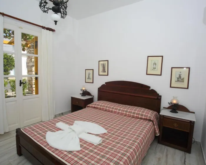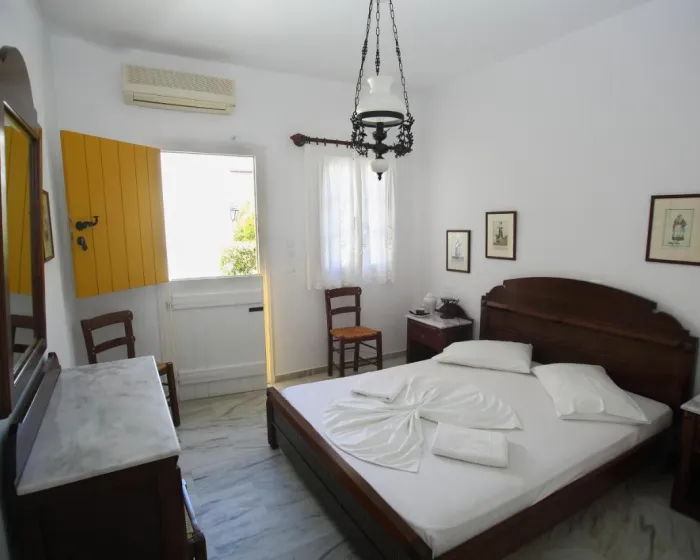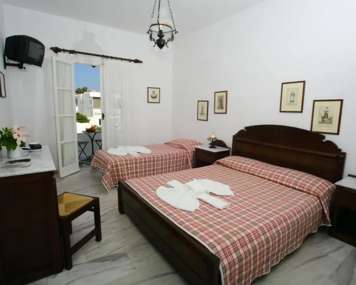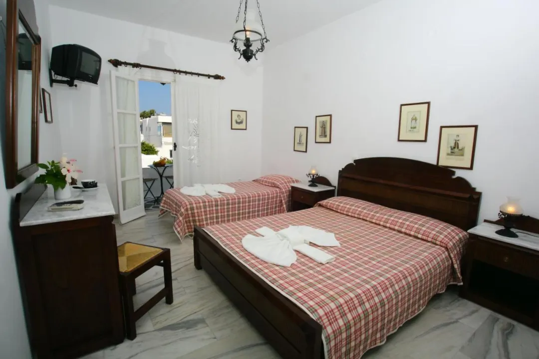 Tradicionalno dekorisane sa nameštajem od tamnog drveta, sve sobe i apartmani imaju izlaz na terasu ili balkon, neki sa pogledom na grad Naussa. Svaka soba ima TV, mini frižider i fen za kosu.