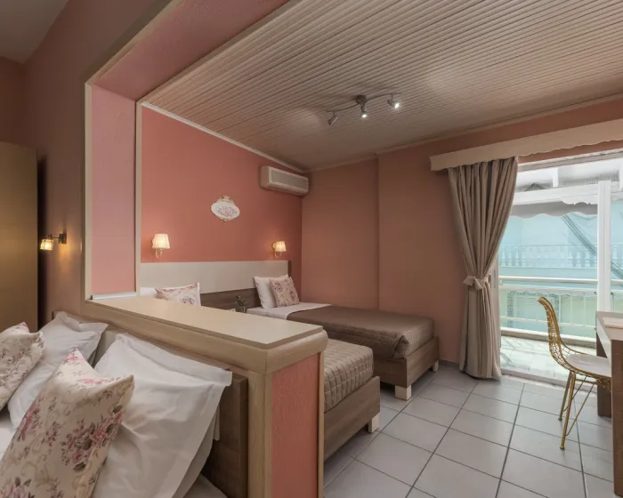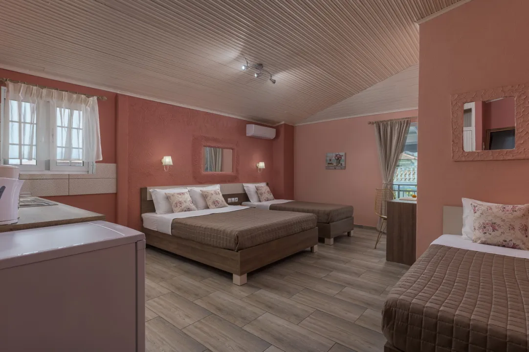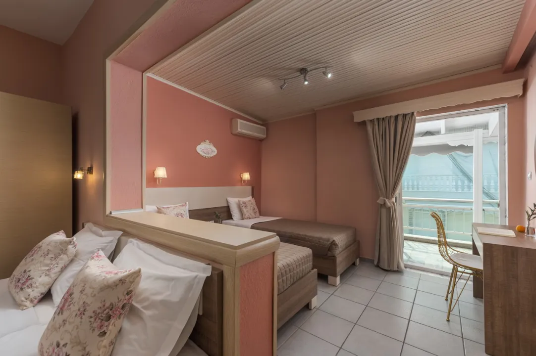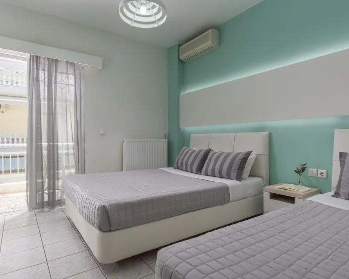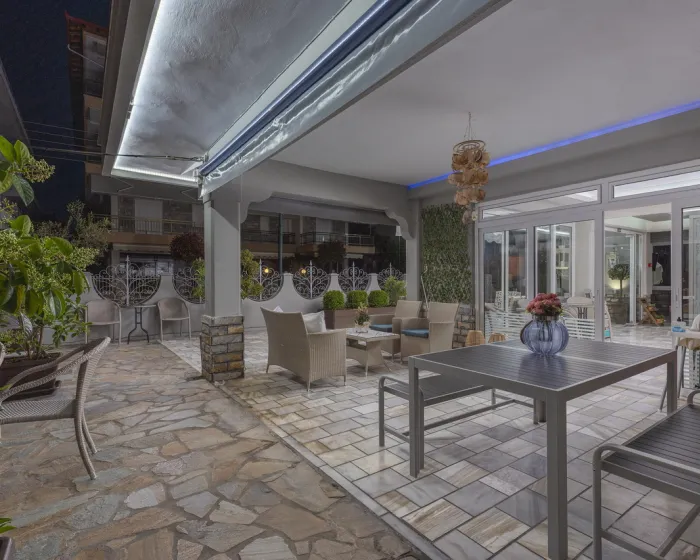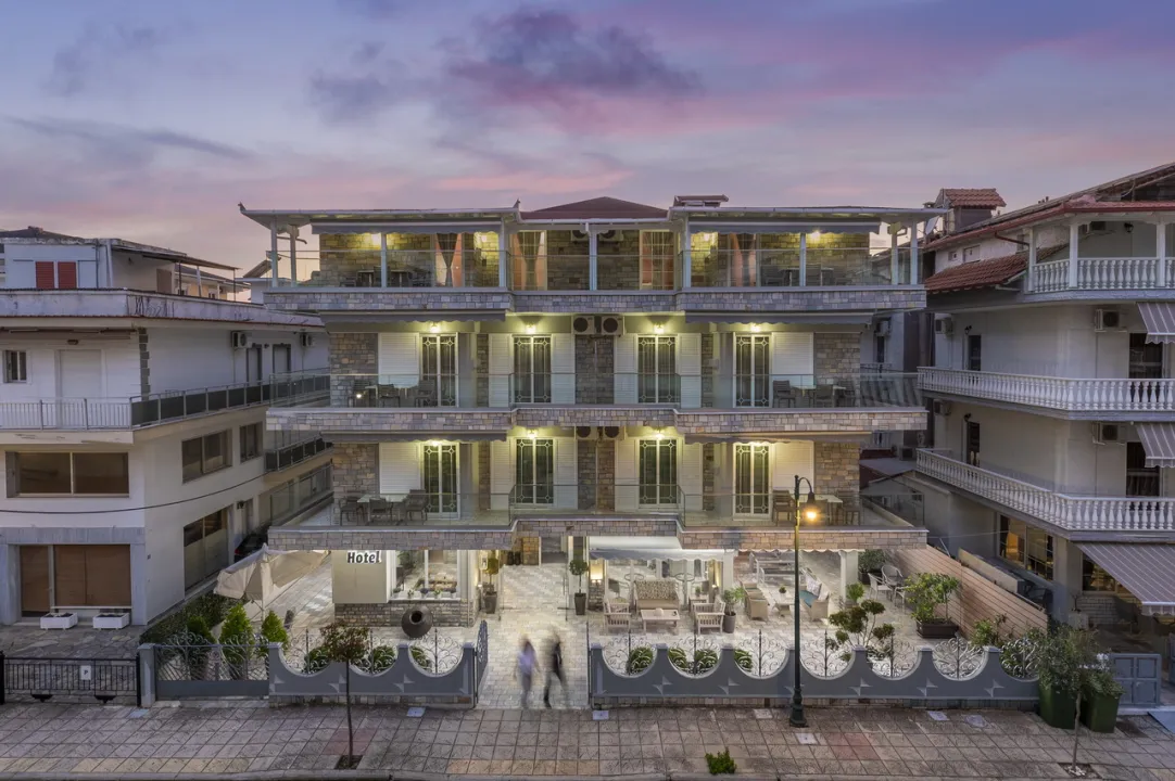 Ouzas Luxury Hotel Olympic Beach se nalazi u letovalištu Olympic beach, u oblasti Katerini Pieria. Udaljen je oko 120m od plaže i oko 100m od centra letovališta. Nalazi se u trećoj paralelnoj ulici sa šetalištem. U neposrednoj blizini hotela se nalazi mini-market. Doručak koji se služi u restoranu aparthotela je isključivo klasični grčki organski, tradicionalni doručak, a sve posluženo je organski napravljeno i domaće.