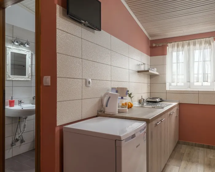 kupatilo, opremljena mini-kuhinja, frižider, klima-uredjaj, SAT TV, frižider, balkon, komarnik, balkon sa garniturom za sedenje
