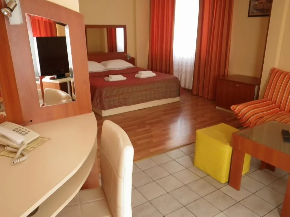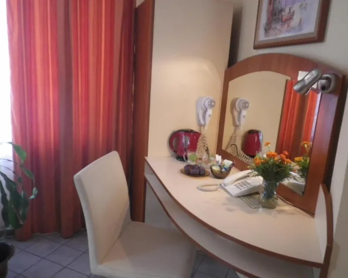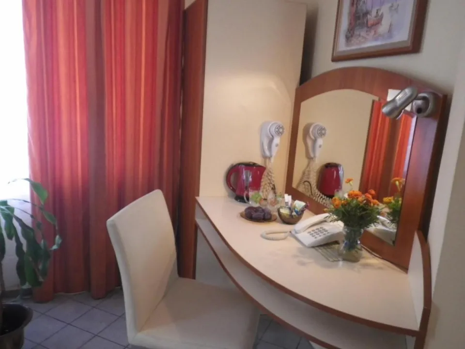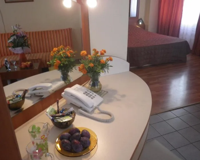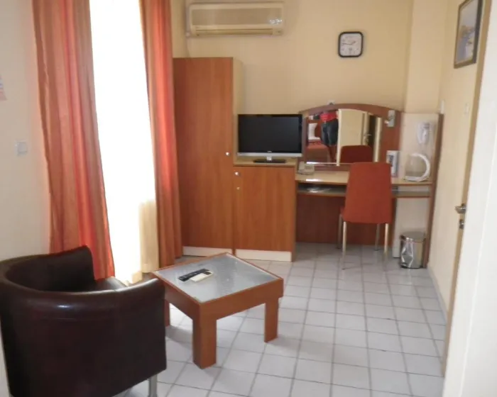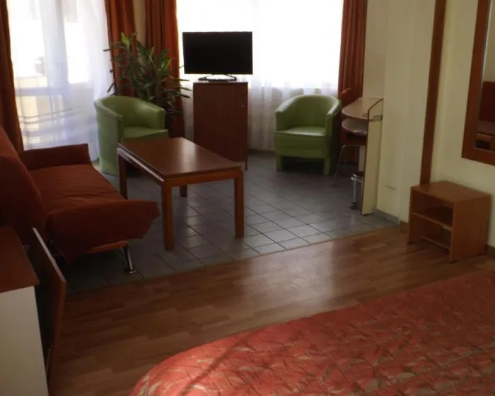 Klima uređaj i centralno grejanje osiguravaju da sobe održavaju prijatnu temperaturu. Gosti mogu uživati u pogledu na ulicu sa balkona ili terase. Sobe sadrže bračni krevet i sofu. Dodatni kreveti mogu biti zatraženi. Sef, minibar i radni sto su takođe dostupni. Dodatne pogodnosti uključuju frižider i aparat za kafu/čaj. Set za peglanje je obezbeđen radi gostove praktičnosti. Direktan telefonski poziv, TV i WiFi (bez dodatne naknade) su takođe obezbeđeni. Papuče su uključene. Kupatila su opremljena tušem i fenom za kosu. Radi dodatnog komfora u kupatilima, gostima su ponuđeni kozmetički proizvodi. Hotel ima porodične sobe i sobe za nepušače. Autorska prava GIATA 2004 - 2024. Višejezično, obezbeđeno od www.giata.com za klijenta br. 124971