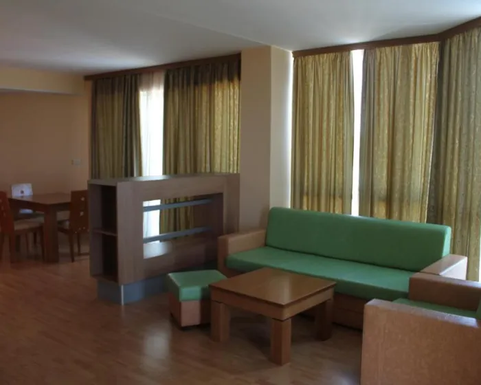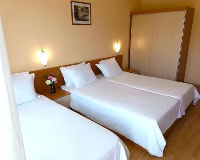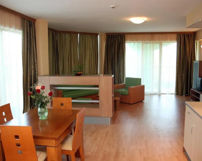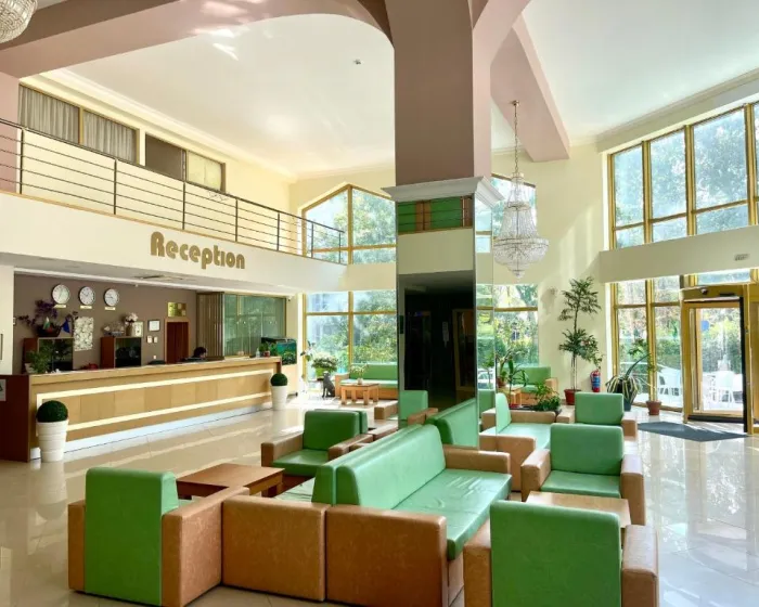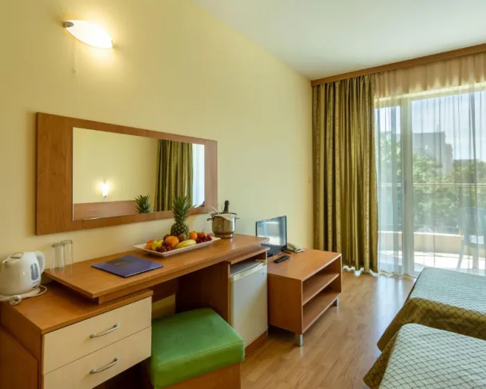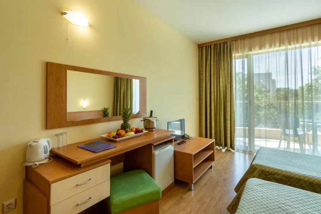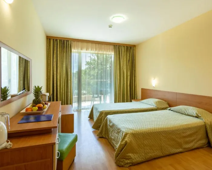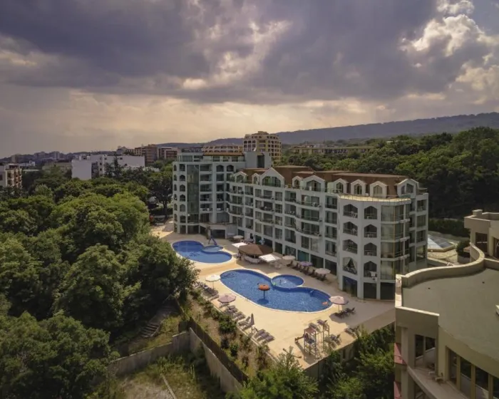 Ovaj elegantni hotel se nalazi u srcu letovališta, samo 200 m od plaže. Okružen je prelepom hrastovom šumom, koja ublažava vrele zrake letnjeg sunca. Hotel nudi tišinu, mir i udobnost, čineći ga najprikladnijim za porodice. Istovremeno, lokacija hotela - blizu centra letovališta i većine noćnih barova i diskoteka - savršena je za one koji traže noćni život ili za ljubitelje aktivnih odmora. Zaista, gosti će pronaći restorane, barove, klubove i prodavnice letovališta, sve na oko 250 m udaljenosti. Dalje atrakcije u okolini uključuju manastir Aladža (8 km), Varna Delfinarijum (17 km) i grad Varna sa svojom katedralom (18 km). Aerodrom Varna udaljen je 30 km, a do aerodroma Burgas ima 120 km.